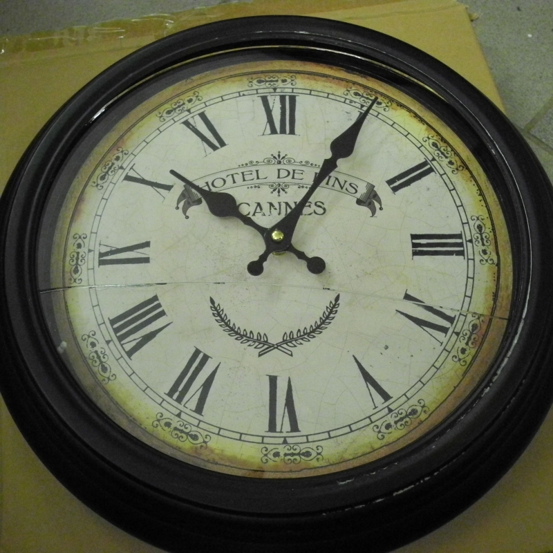 Hodiny nástěnné - poškozené - prasklé sklo.