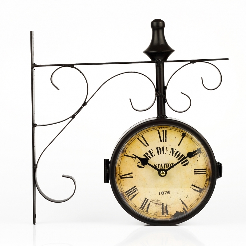Nástěnné hodiny Gare Du Nord Station oboustranné s konstrukcí 31x30cm a průměrem ciferníku 14cm.