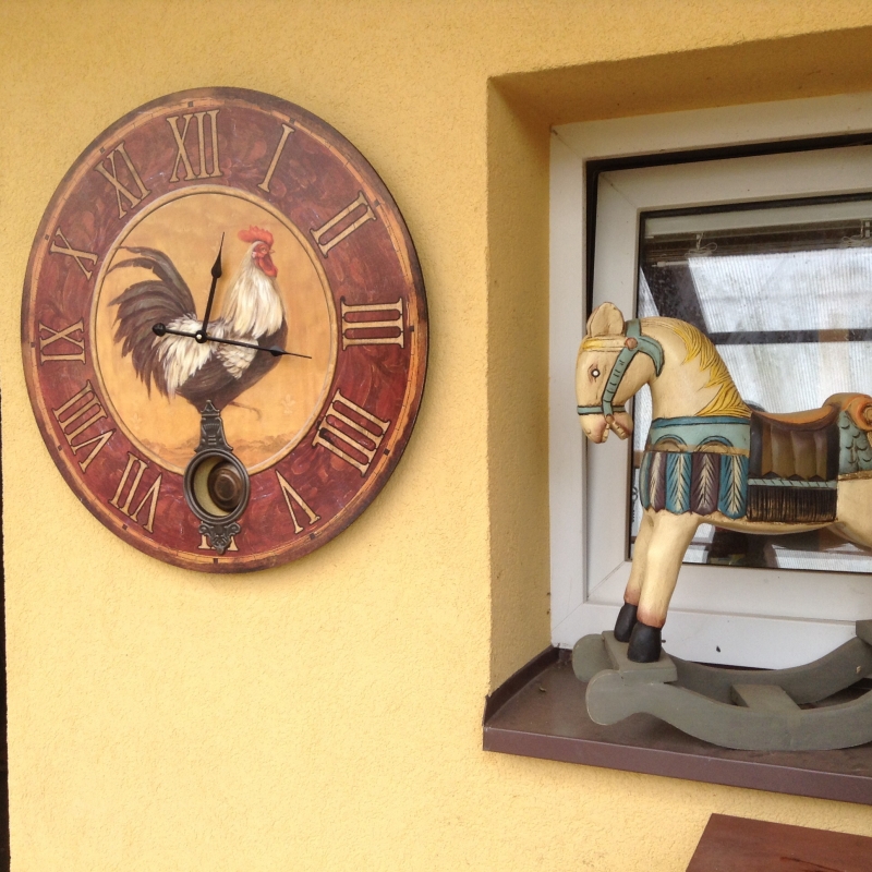 Hodiny s motívom kohúta sa budú krásne vynímať napríklad na záhradnej terase či v altánku.