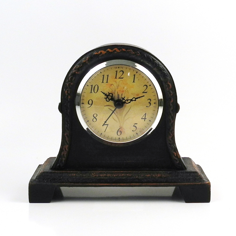 Hodiny stolní antik 175x150x75mm, jsou opatřeny tichým strojkem Quartz na jednu tužkovou baterii.