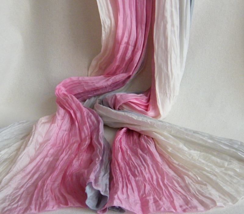 Je maľovaná profesionálnymi farbami pre parné fixáciu. Hodváb tak zostane hebké, jemné a nadýchané a farby sú živé a žiarivé.
