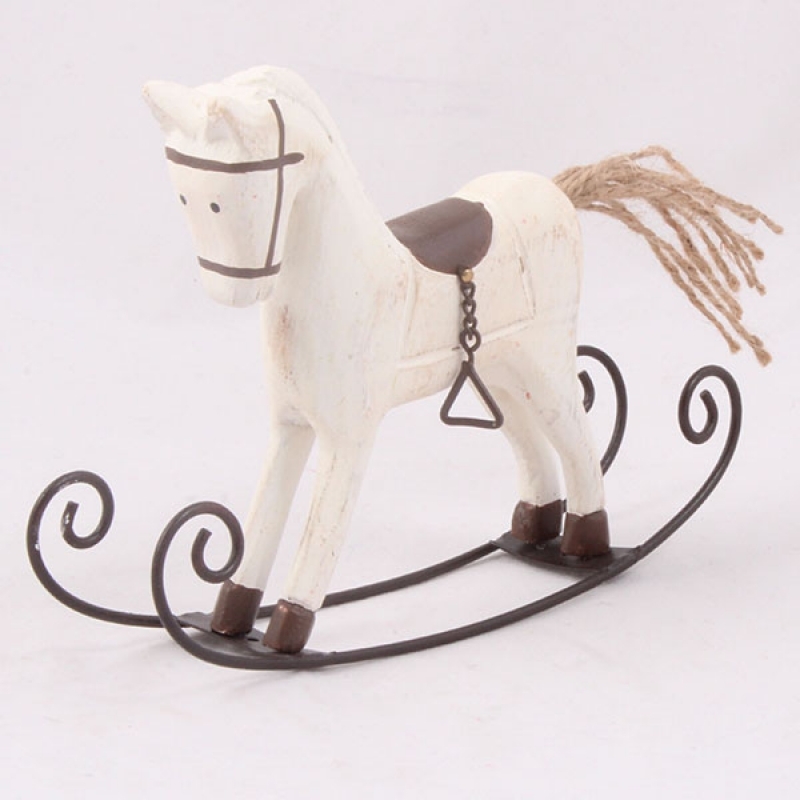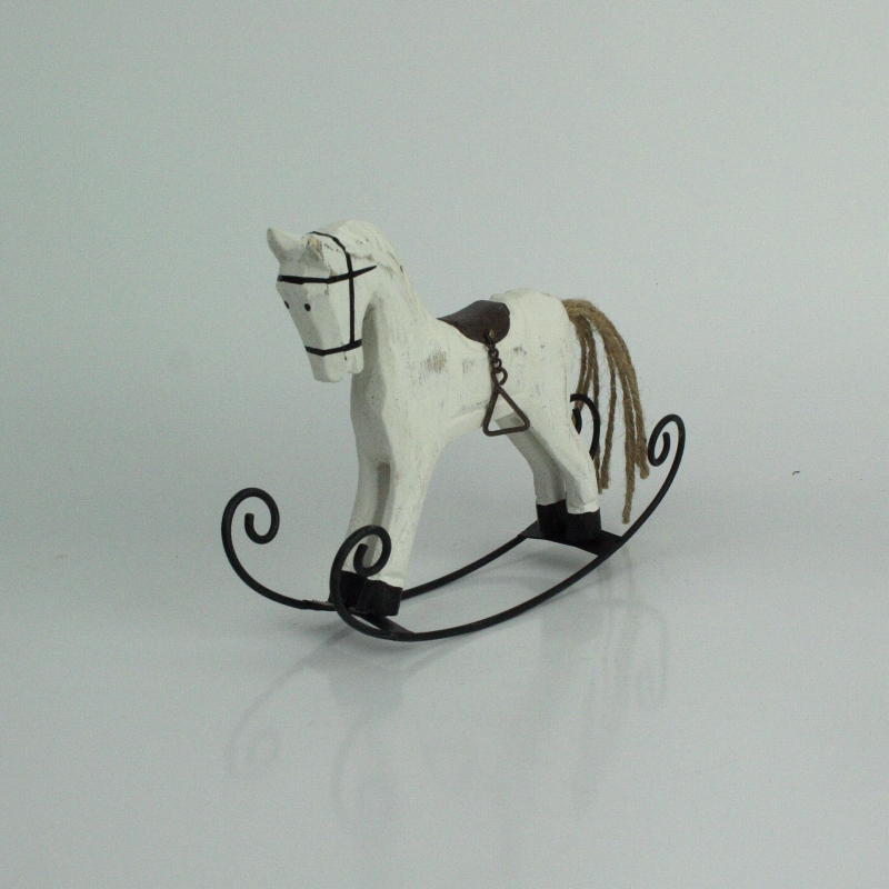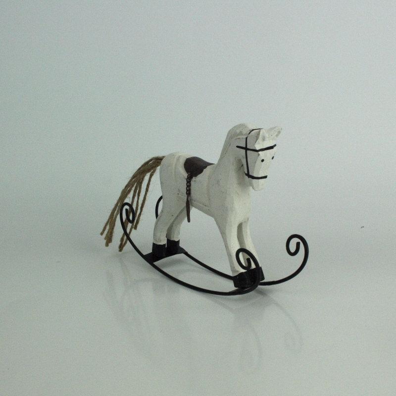 Hojdací drevený koník biely 16x12x3,5cm