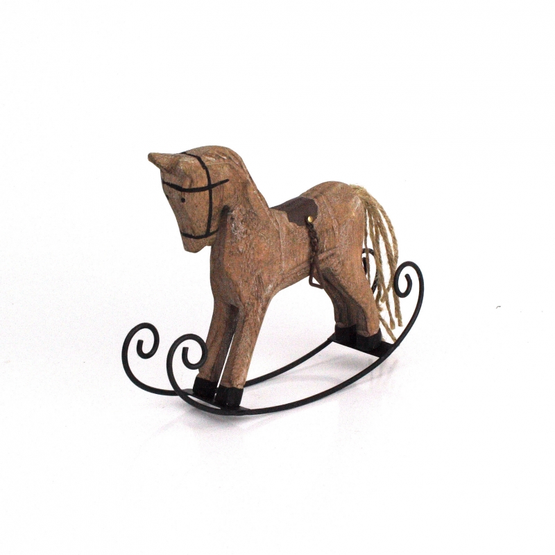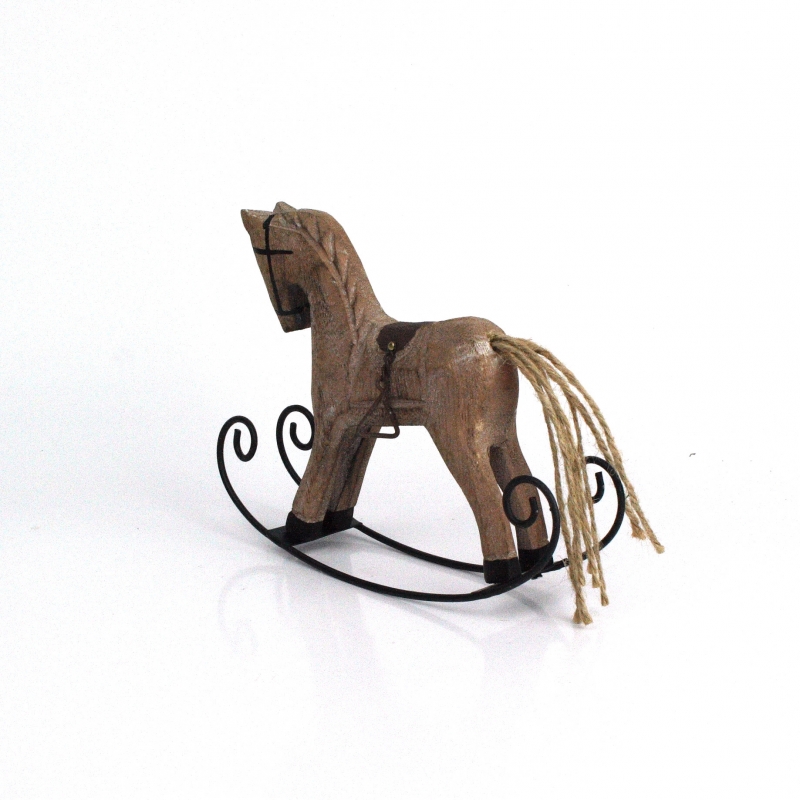 Hojdací drevený koník hnedý 16x12x3,5cm