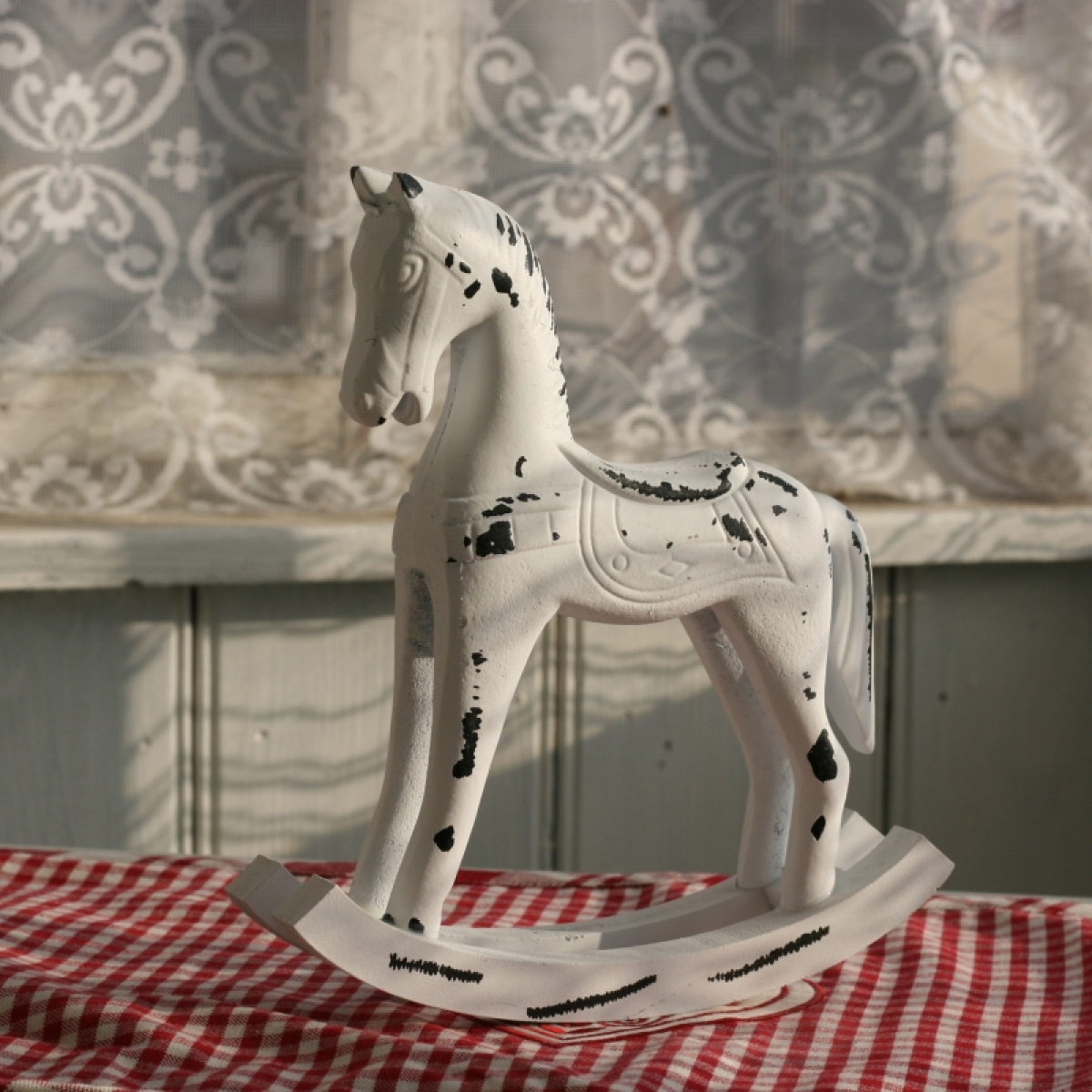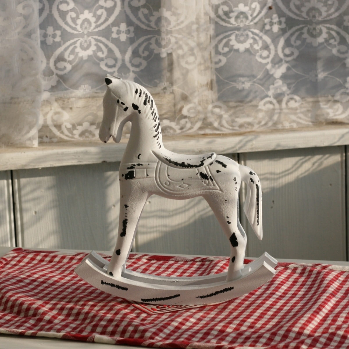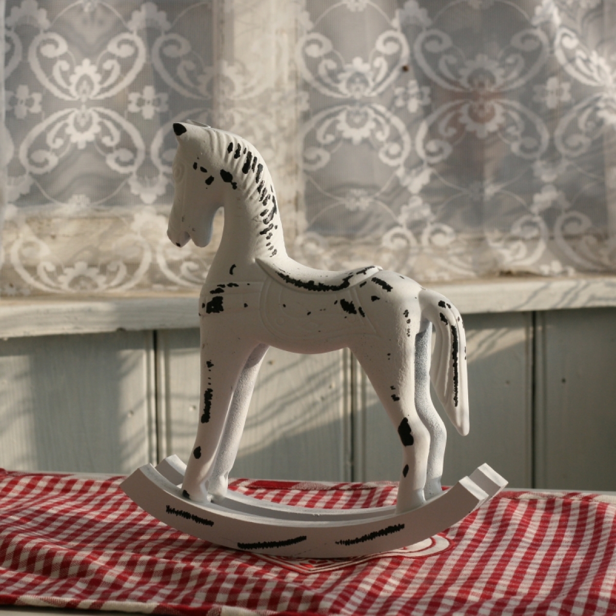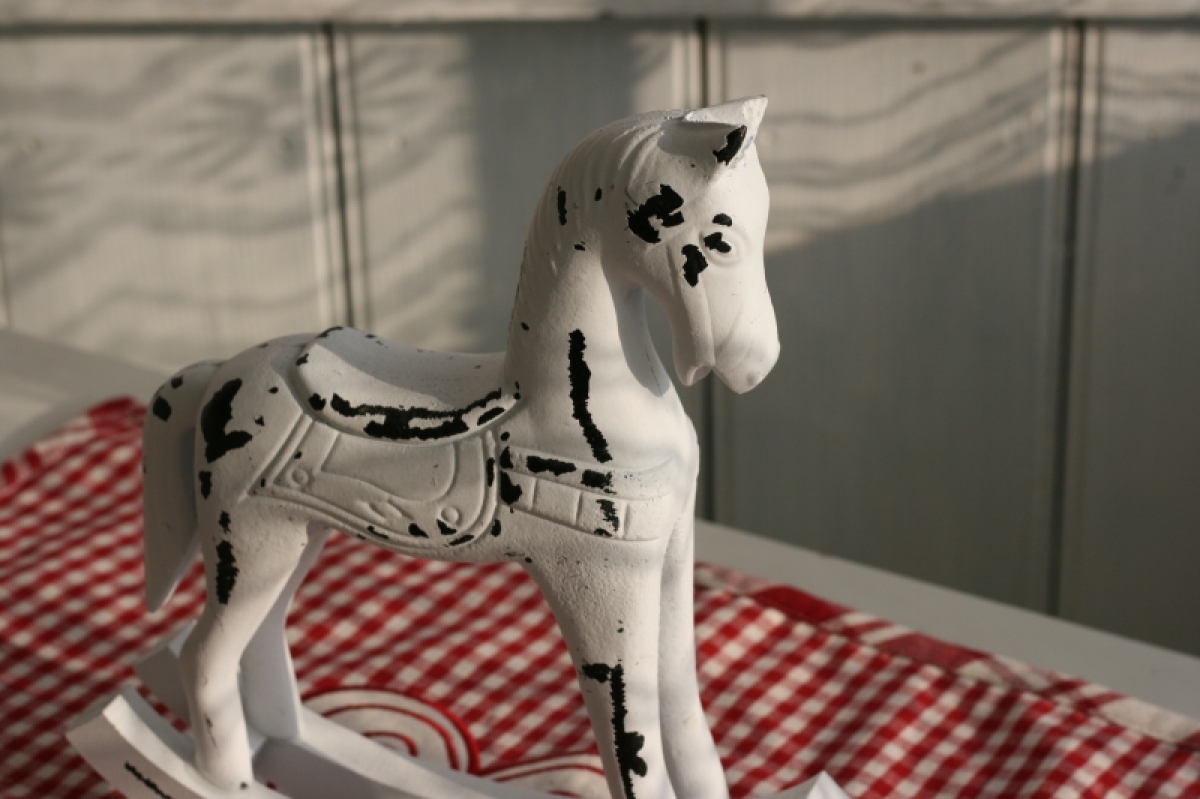 Hojdací kôň drevený biely 22x20cm
