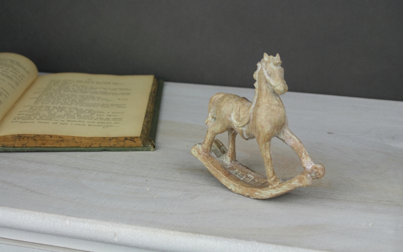 Hojdacie kôň drevený s patinou 9,5cm ako krásna vintage dekorácia na komodu či policu.