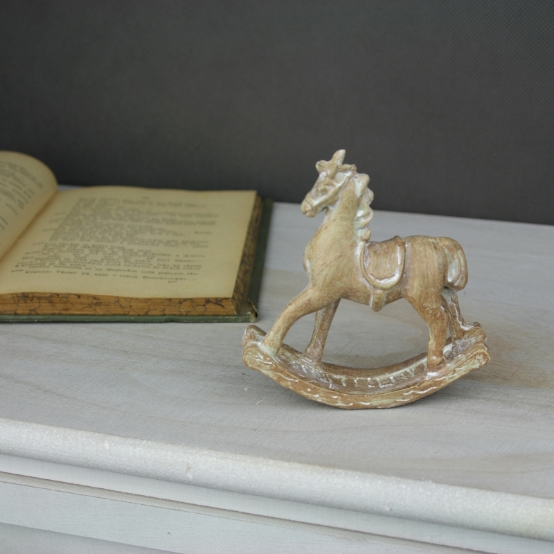 Drevená soška hojdacieho koňa sa hodí k dozdobenie spálne, obývačky aj detskej izby.