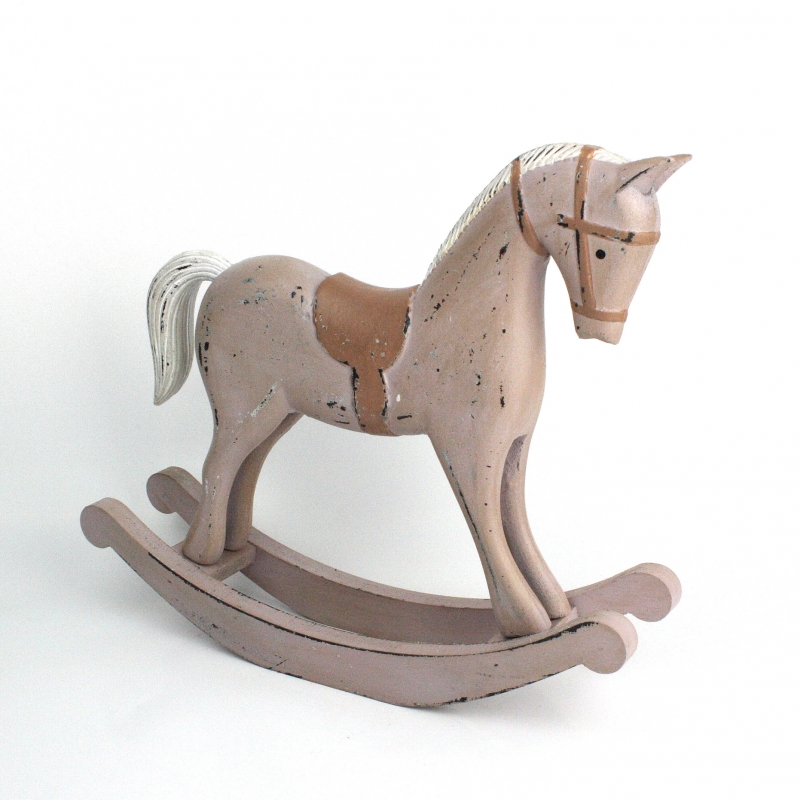 Hojdací kôň strong> drevený staro-ružový vás vráti myšlienkami späť do detských rokov.