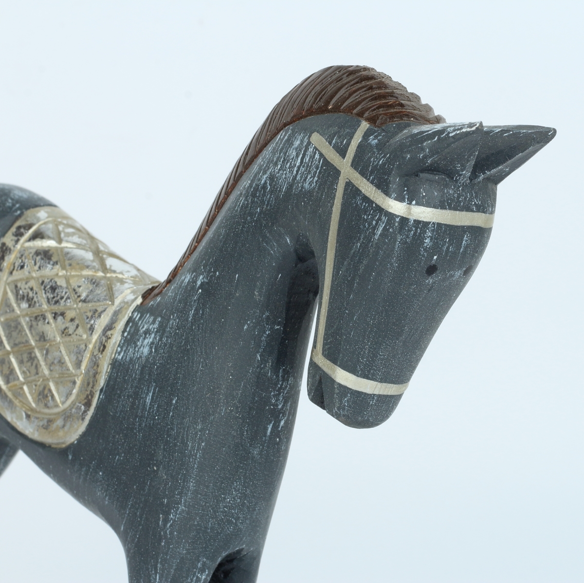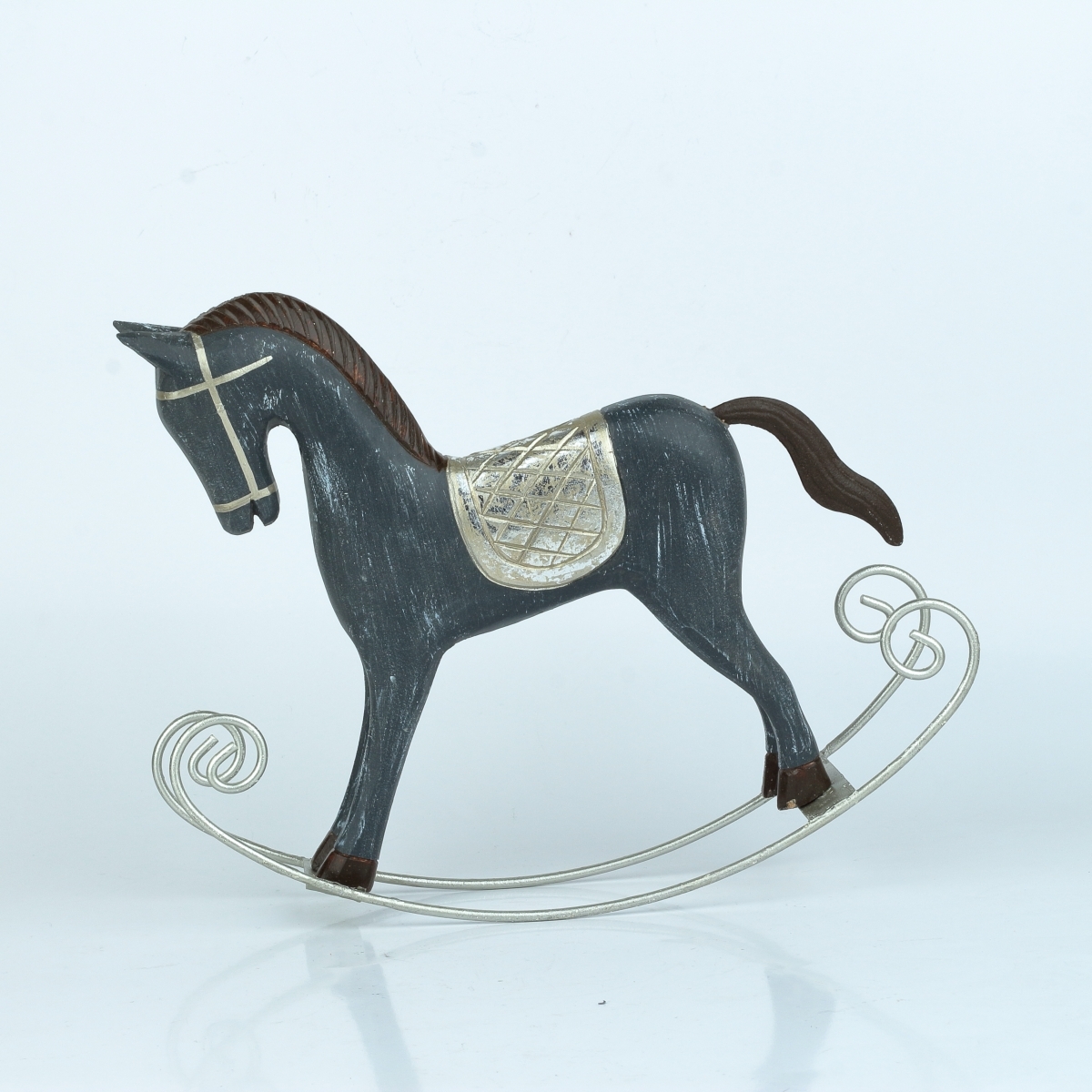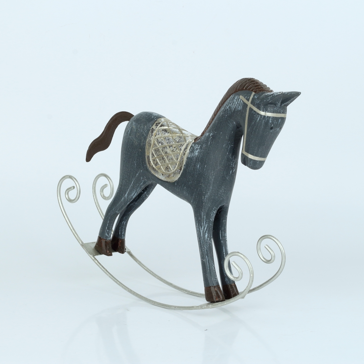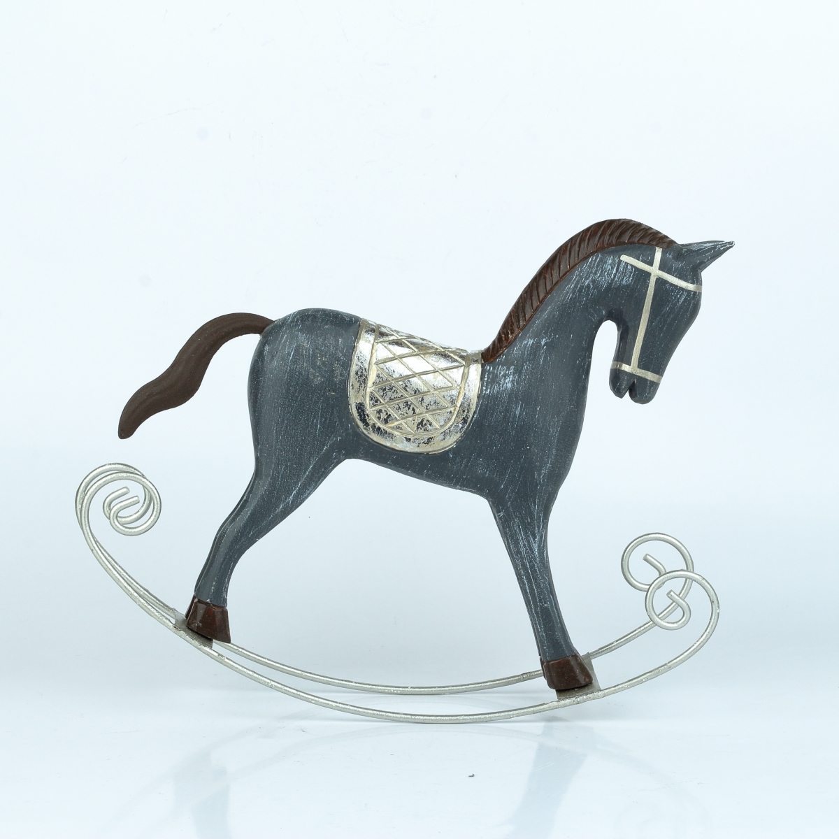 Hojdací kôň šedý so striebornými detailmi 30x25 cm