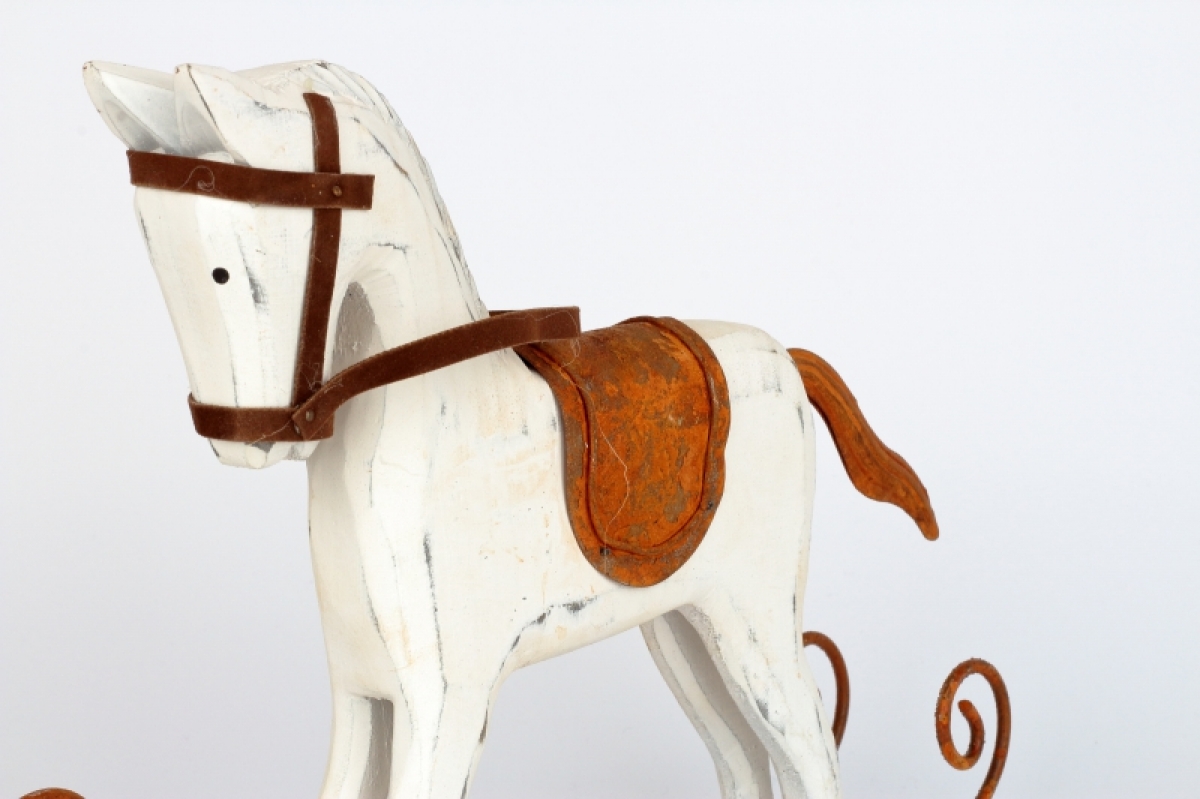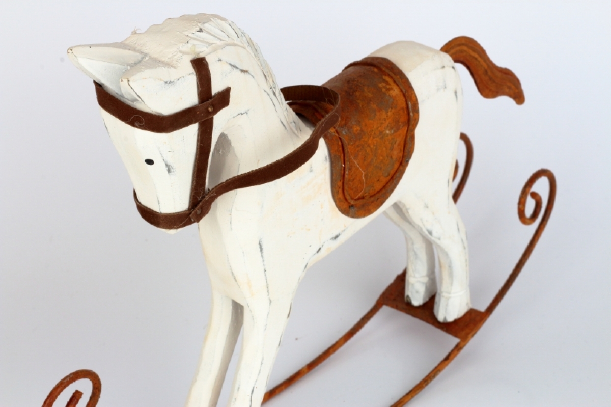 Hojdací koník hrdza si Vás získa na prvý pohľad. Nežná, elegantný bytová dekorácia, ktorá zvádza myšlienky späť do detských rokov. Pripomeňte si čarovné okamihy svojho detstva pri každom pohľade na neho.