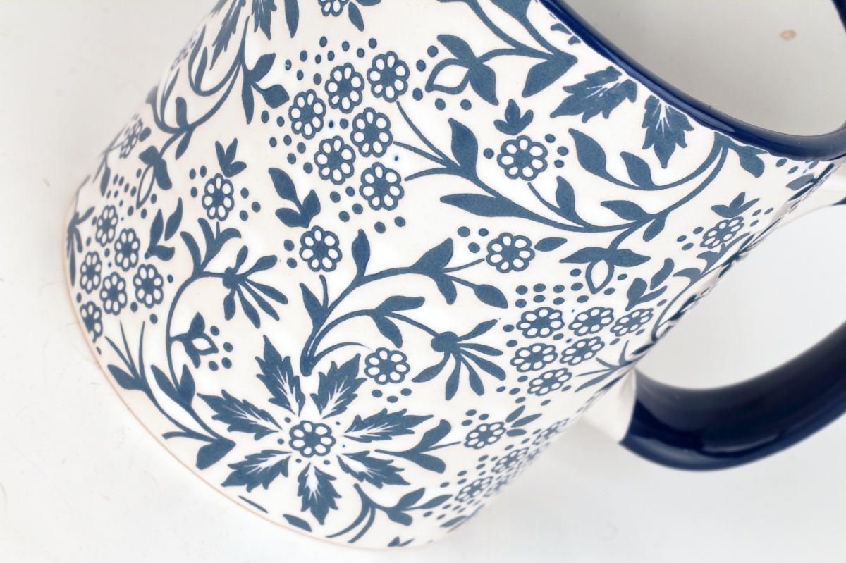 Hrnček kvetinový motív bielomodrý 620ml keramika