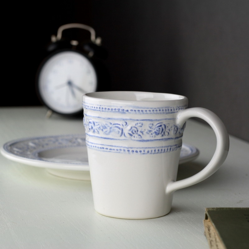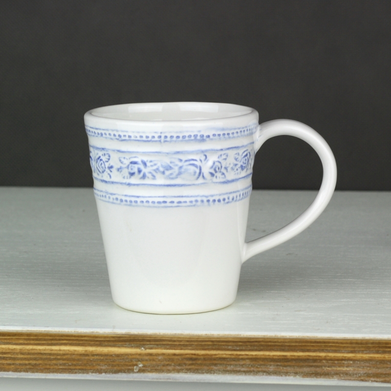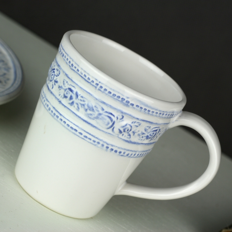 Hrnček modré ruže 0,22l je súčasťou kolekcie, ktorá ako už názov vypovedá, zdobená lemom z jemných modrých ruží.