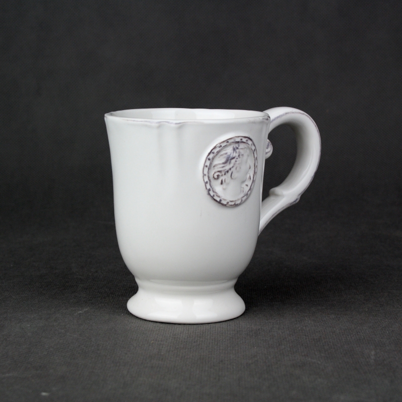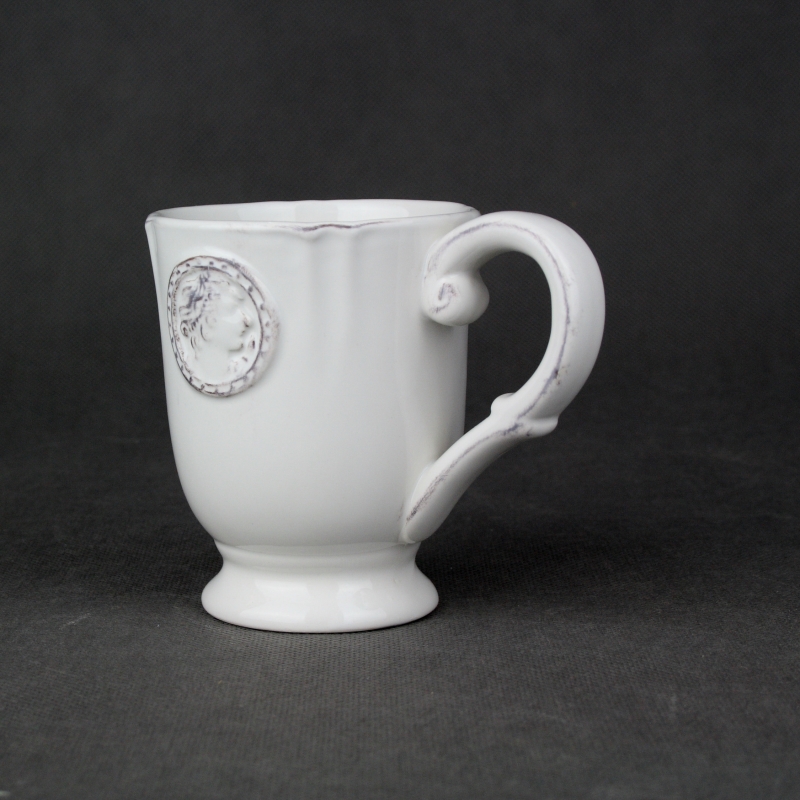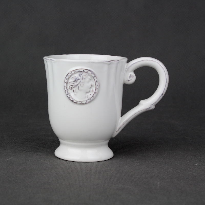 Hrnček má svetlú farbu s tmavšími detailmi na uchu hrnčeka a na spomínanom medailónu. Hrnček Vám spríjemní Vašu raní kávu alebo čaj - doma aj v kanceáři.