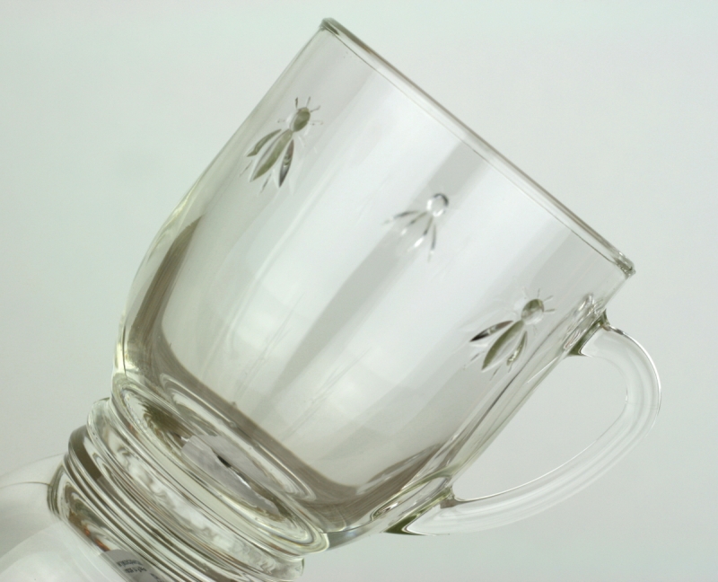 Mug en verre presse, décore de trois abeilles. Cette collection reprend les symboles de la maroquinerie de Napoleon.