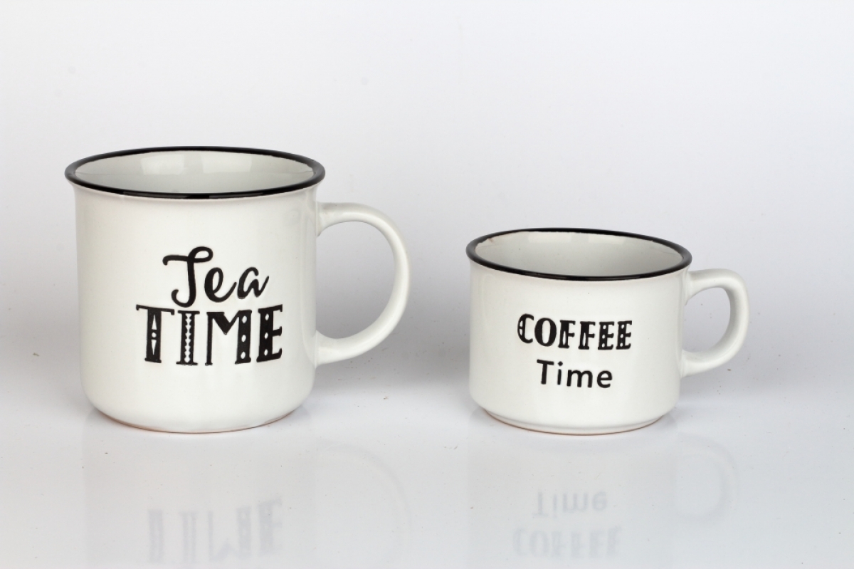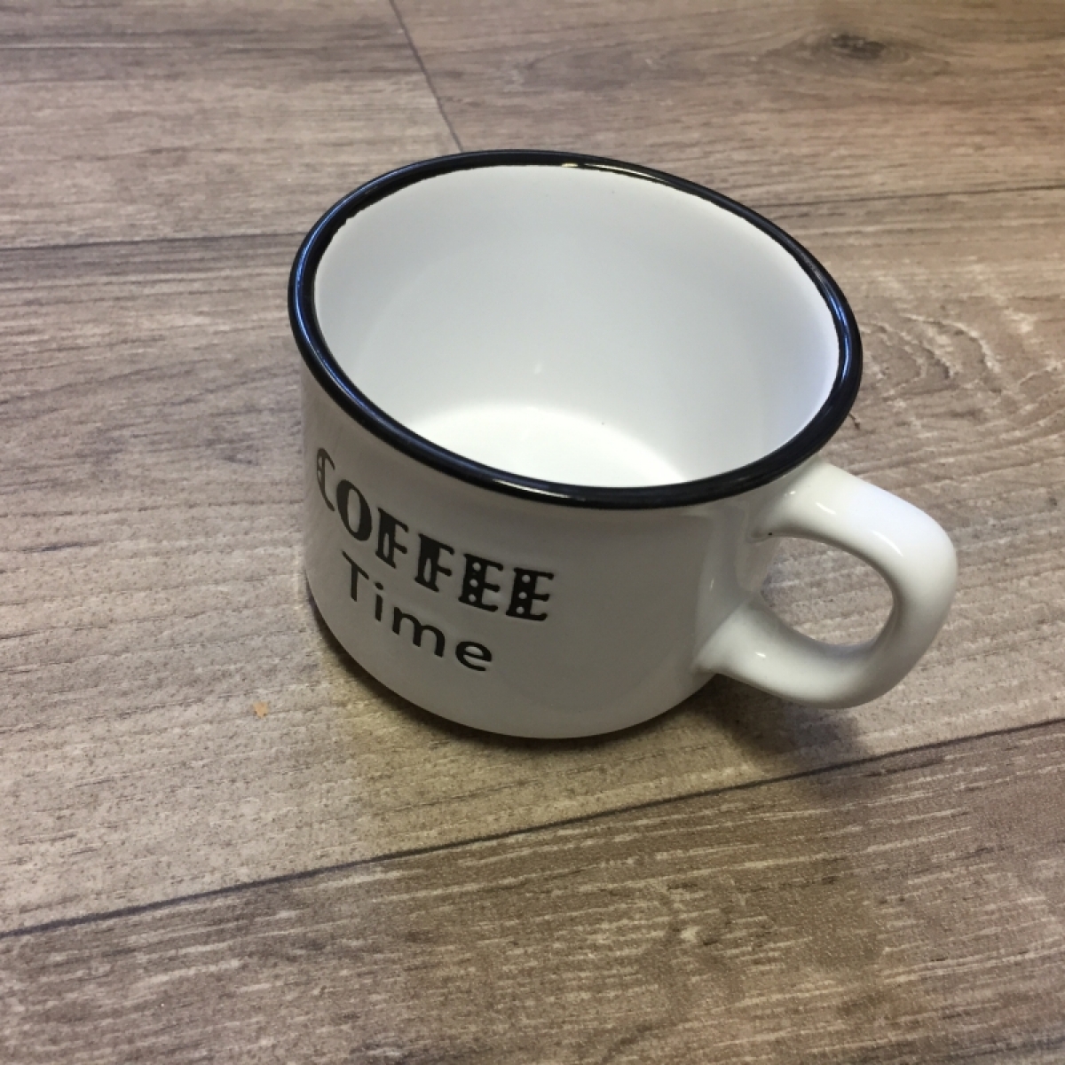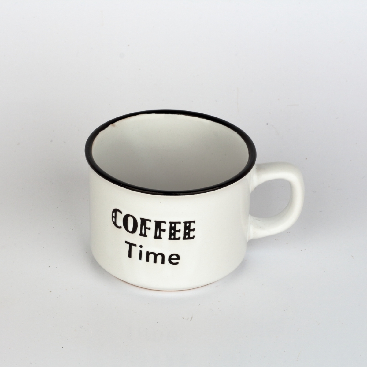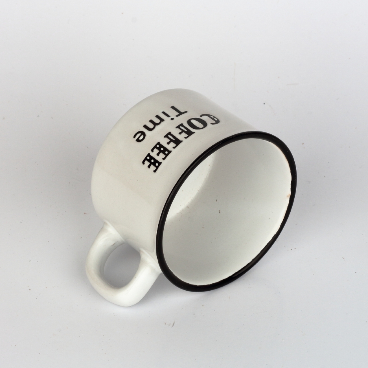 Hrnček na kávu Coffee time pripomína stará známa smalotvaný plecháčik, pritom je keramický.