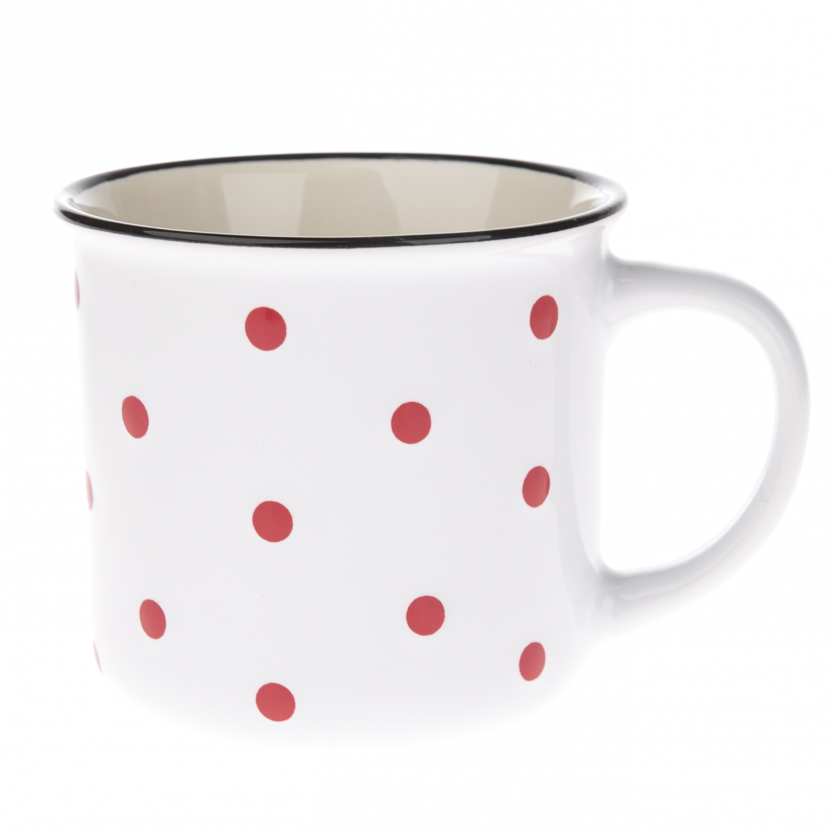 Biely hrnček s bodkami v červenej farbe je ako vystrihnutý z albumu z nášho mladosti a určite v ňom bude kakao chutiť ešte viac ako vtedy. Môže sa tiež stať vaším obľúbeným hrnčekom na popoludňajšiu kávu alebo ranný čaj.