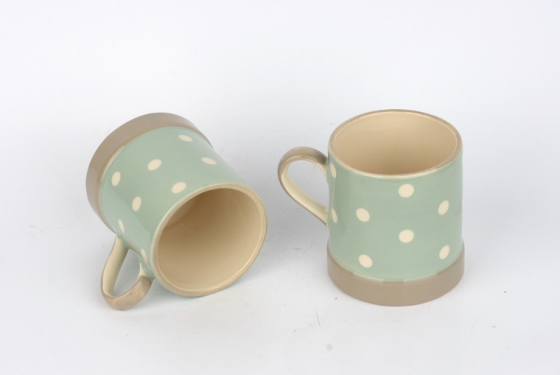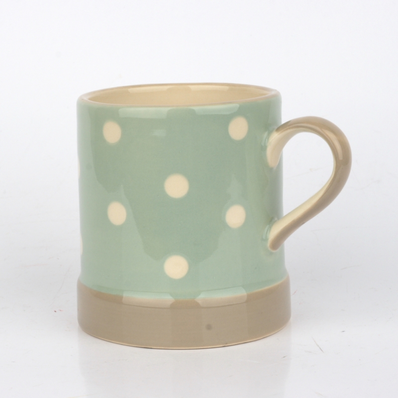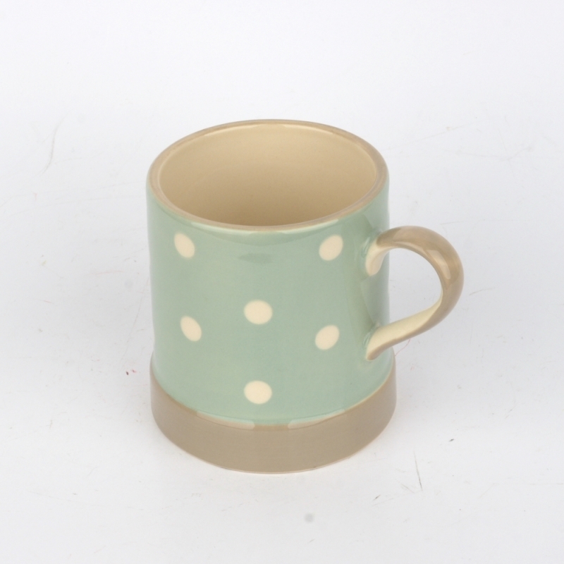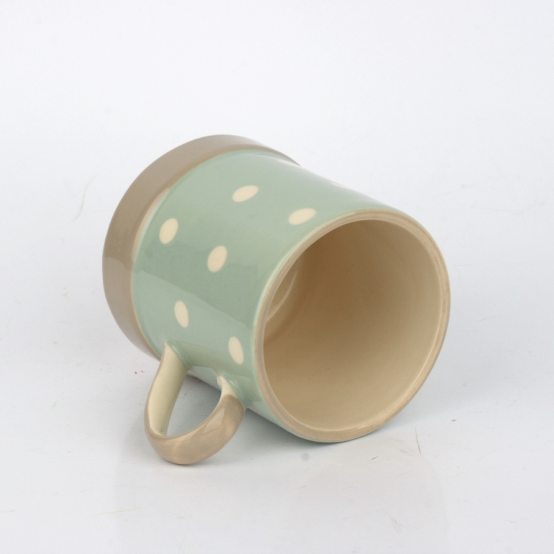 Hrnček s bodkami Cream Country 400ml v ladných pastelových tónoch s prvkami vintage skvele zapadne do dvenkovsky ladené kuchyne.
