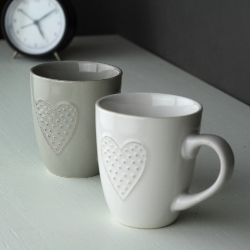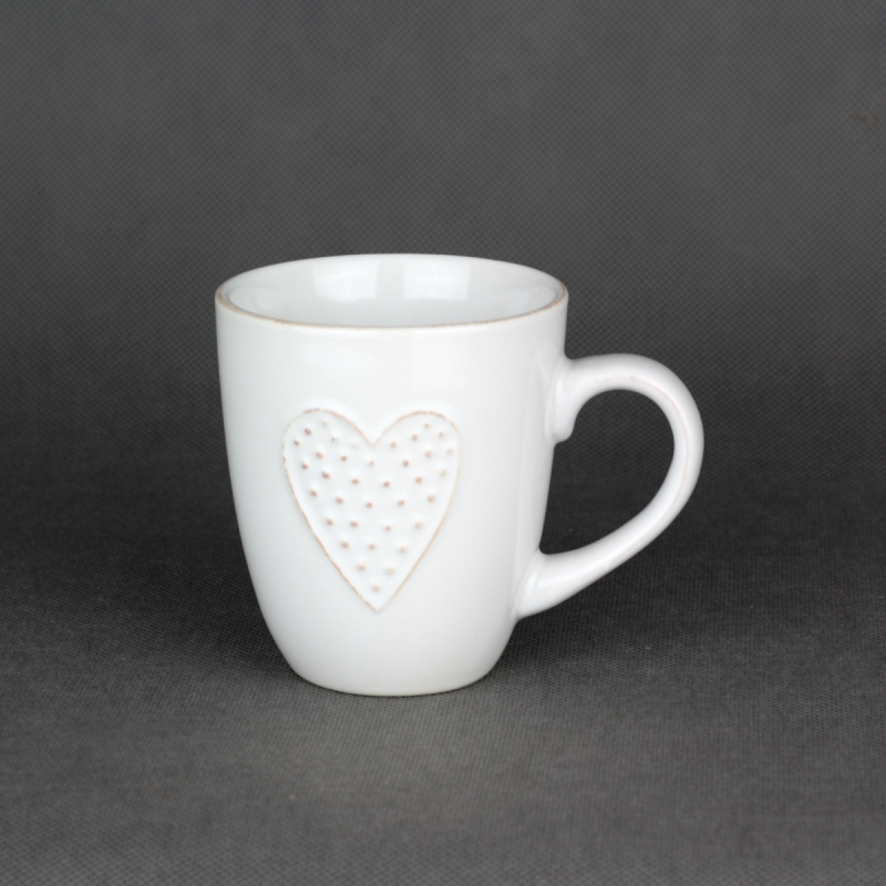 Keramický ručne zdobený hrnček na kávu či čaj nebudete chcieť dať z ruky. Jeho jednoduchý elegantný vzhľad si Vás podmaní a už nebudete chcieť piť z iného. lesklá glazúra v bielej farbe je doplnená o motív srdca.