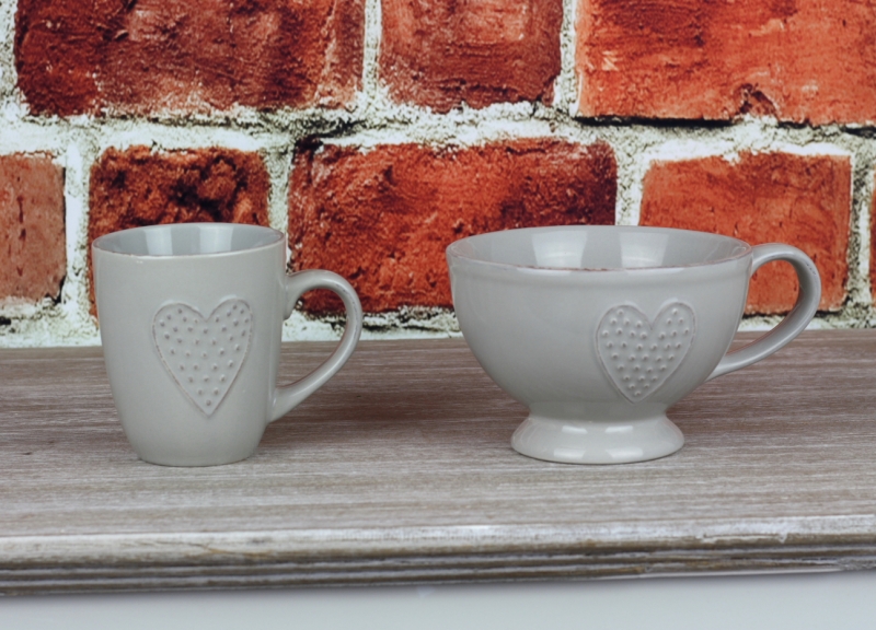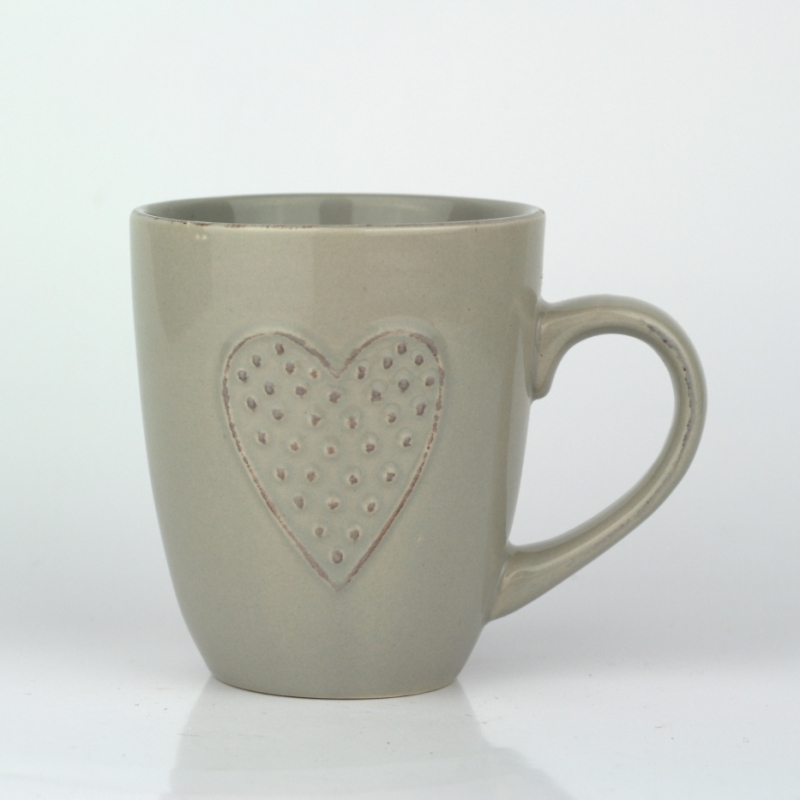 Keramický ručne zdobený hrnček na kávu či čaj nebudete chcieť dať z ruky. Jeho jednoduchý elegantný vzhľad si Vás podmaní a už nebudete chcieť piť z iného. lesklá glazúra v šedej farbe je doplnená o motív srdca.