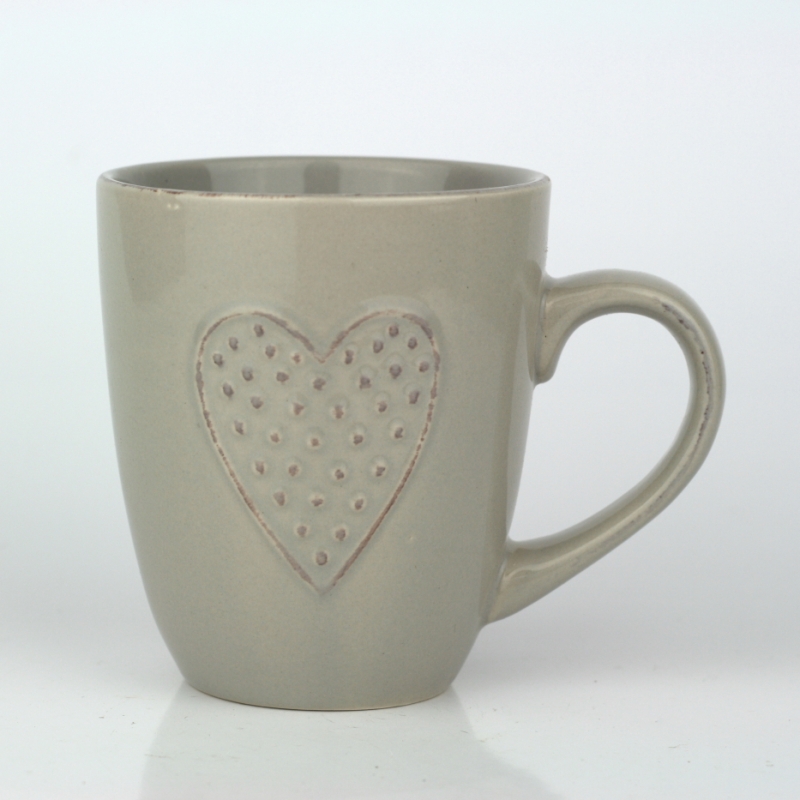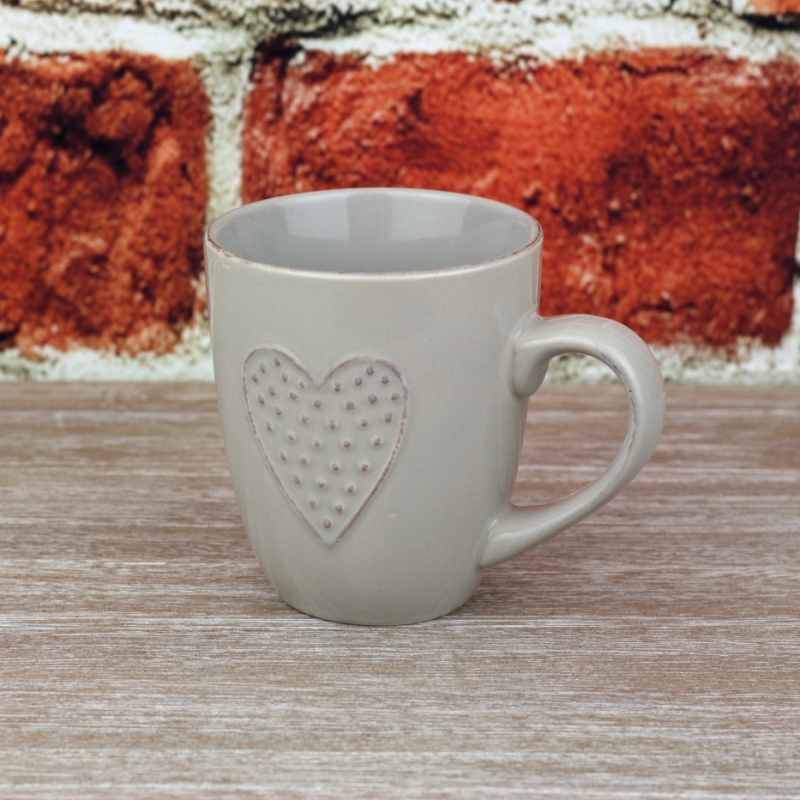 Hrnček so srdcom - ručne zdobený sivý 0,3l