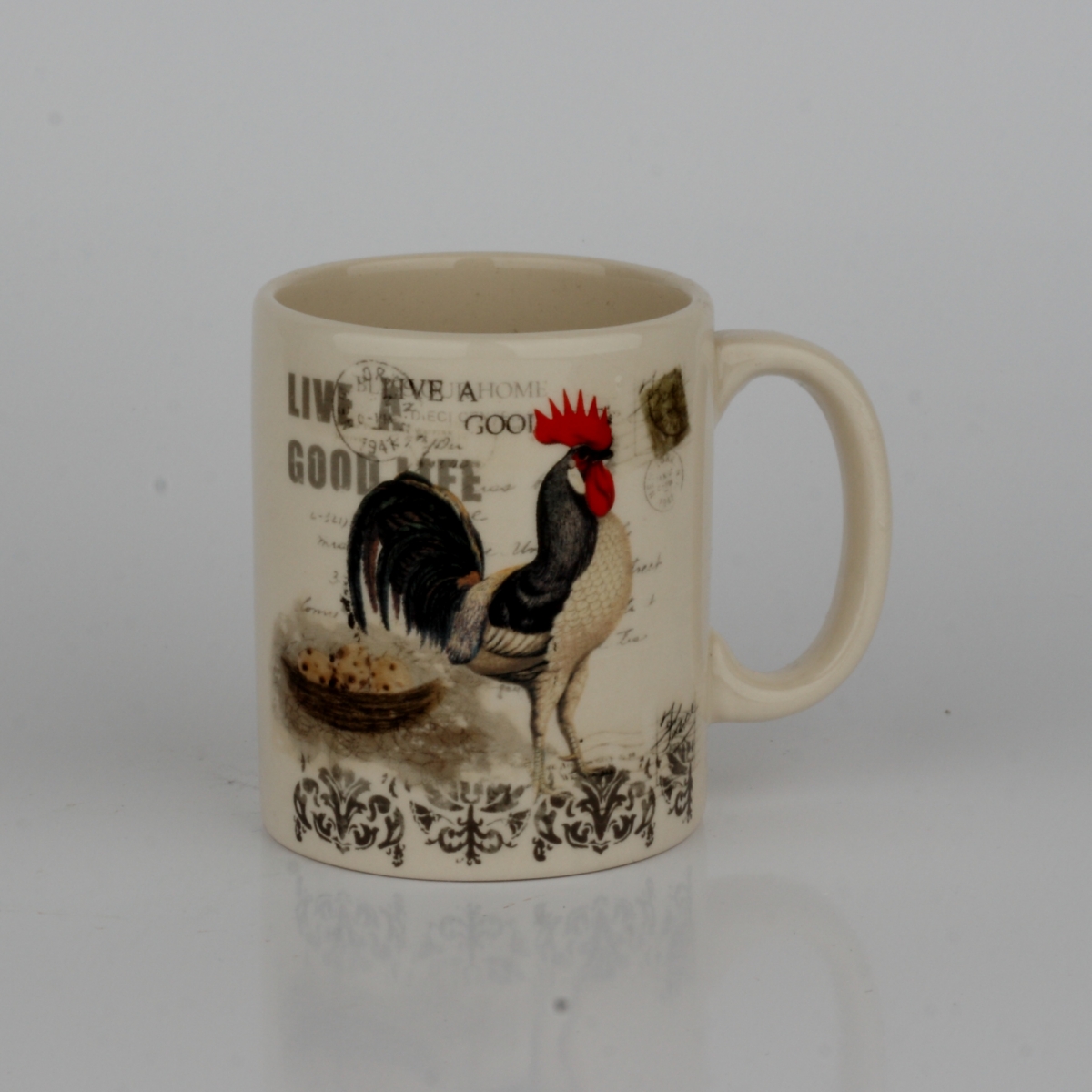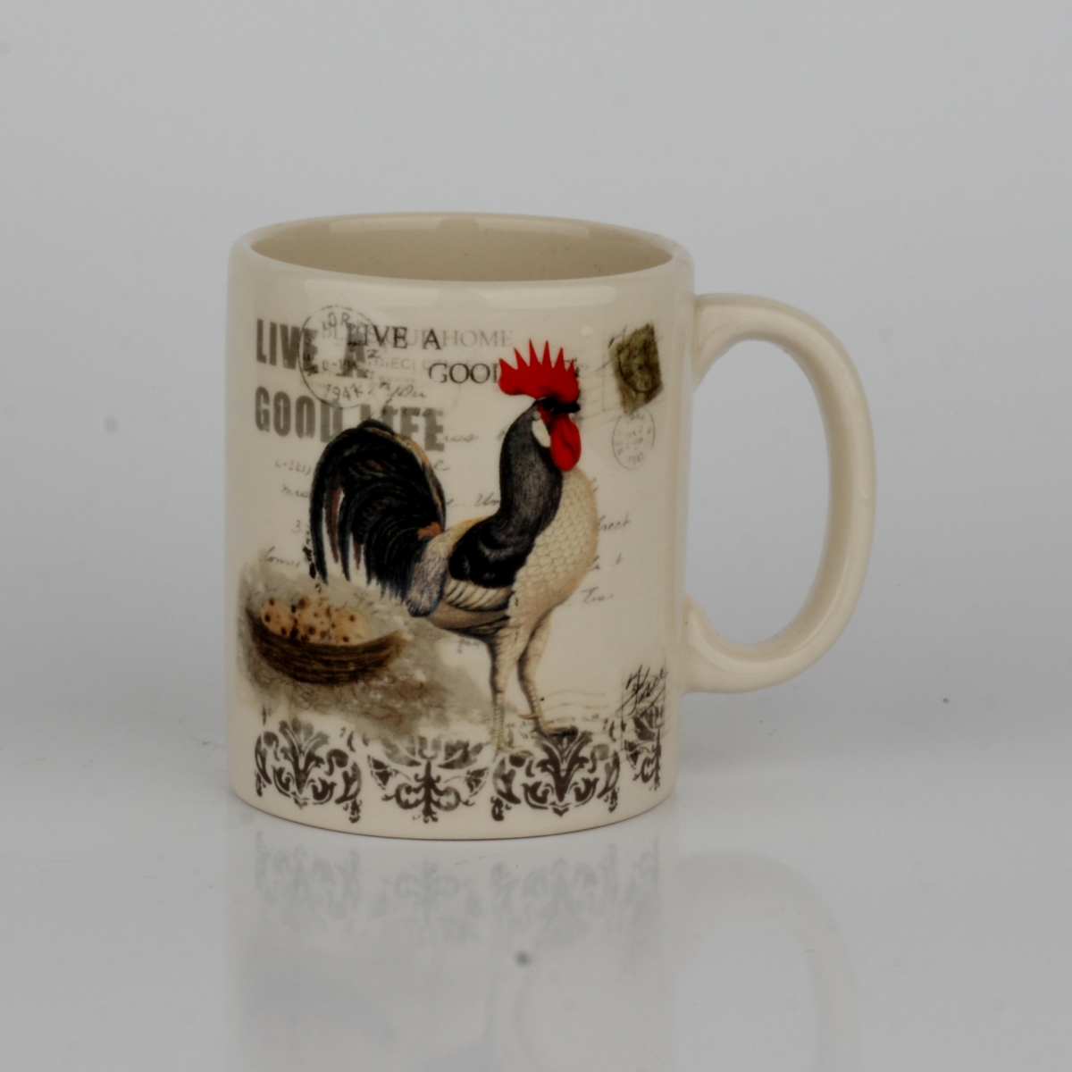 Keramický hrnček s krémovou glazúrou a vidieckymi motívy si zamilujete na každodenné šálku kávy alebo čaju.