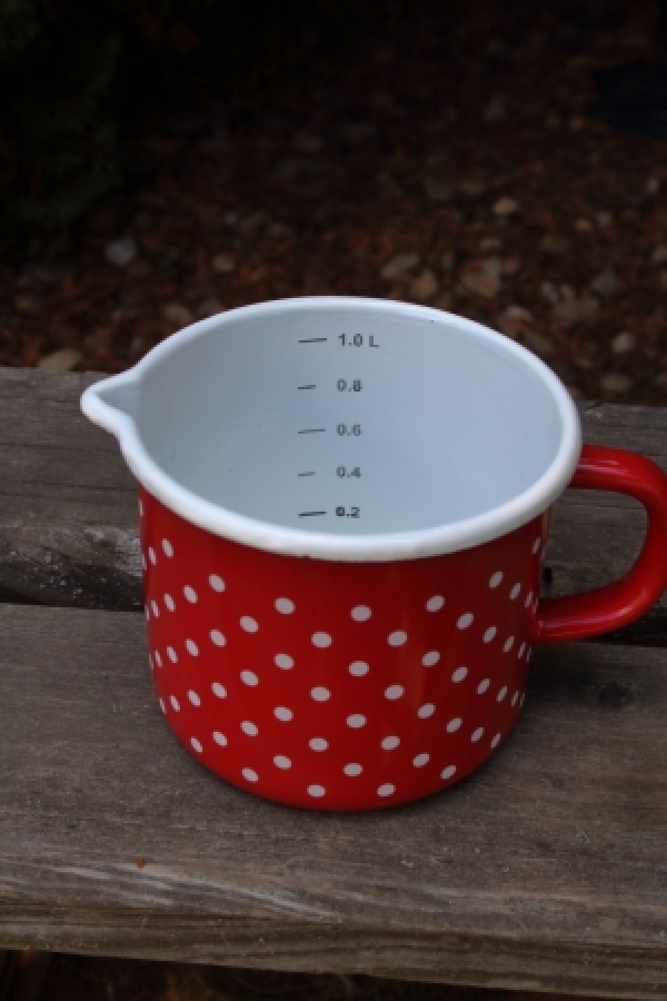 Hrnek s měrkou červený 1,2l - vyřazeno