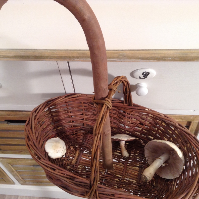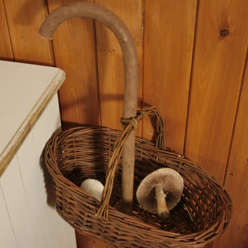 Hubárský košík na fotografii nie je len tak obyčajný košík . Tvorí totiž pár spolu s prútikom a tak trochu pripomínajú výrobky dva v jednom . Vychádzková palica je 105 cm dlhá a jej priemer je asi 3 cm . Jej nerozlučným spoločníkom je košík s rozmerom 37 x 23 x 13 cm . Každý hubár či ten , kto sa rád prechádza a prináša si zo svojich ciest drobné predmety , túto neobvyklú kombináciu iste uvíta . Vychádzková palica s košíkom vzbudí pozornosť aj ako netradičný darček .