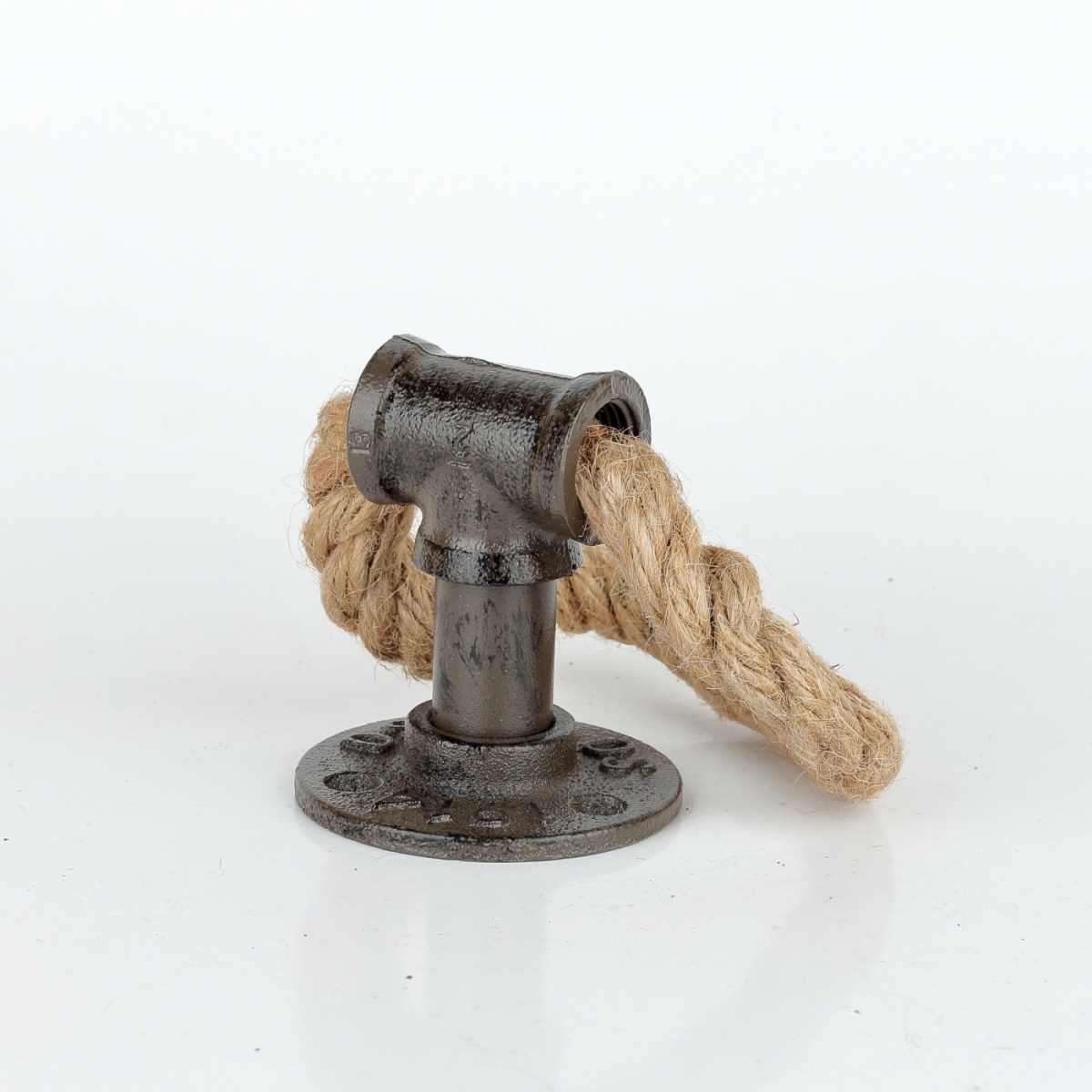 Industry úchytka môže slúžiť aj v kúpeľni. Po prevlečení uteráka jutovým pútkom, zostane uterák v pútku zavesený.