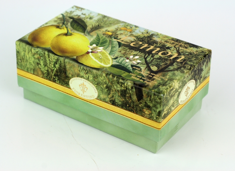 Mydlo je zabalené do luxusnej darčekovej krabičky, ktorá je zafóliované (vôňa mydla tak nevyprchá).