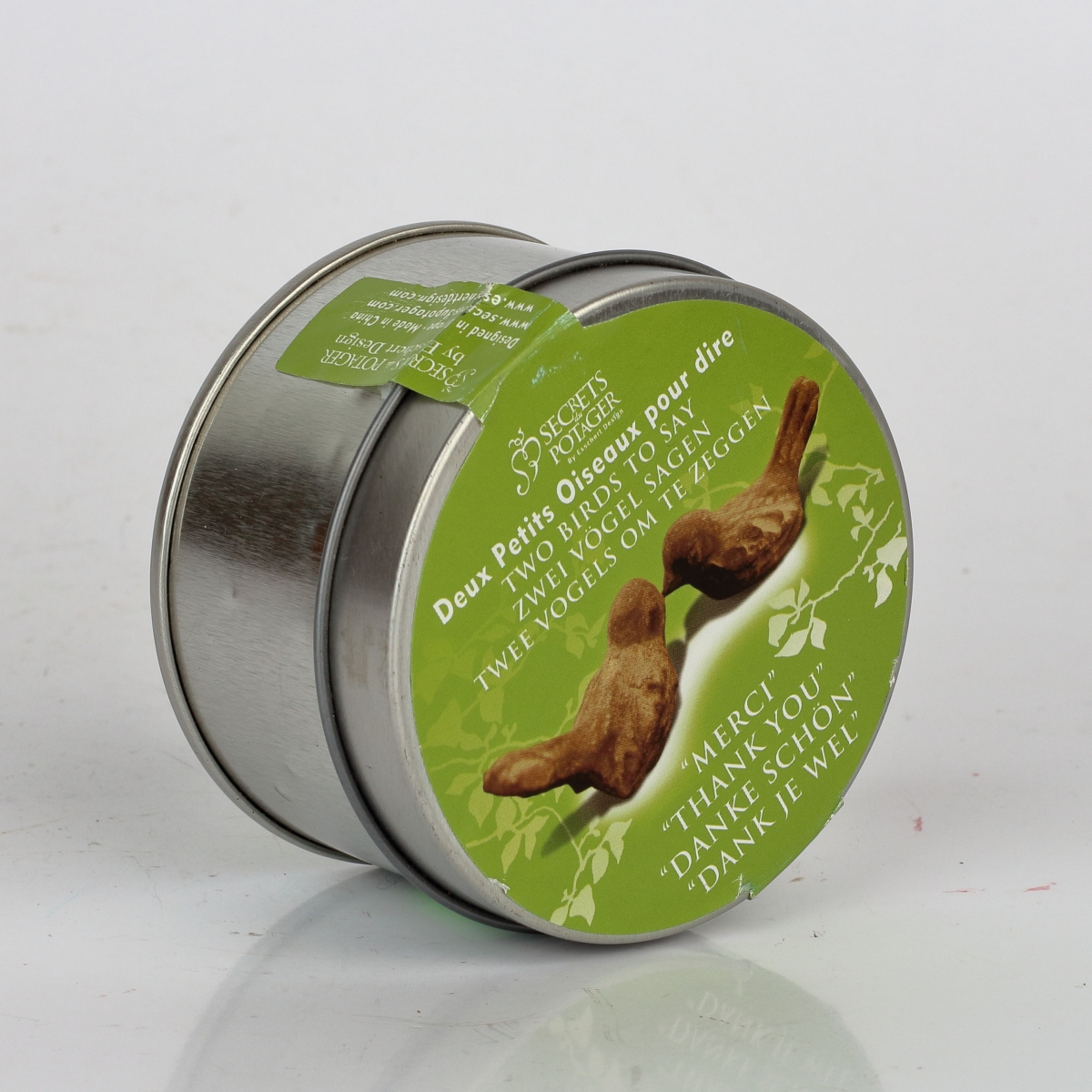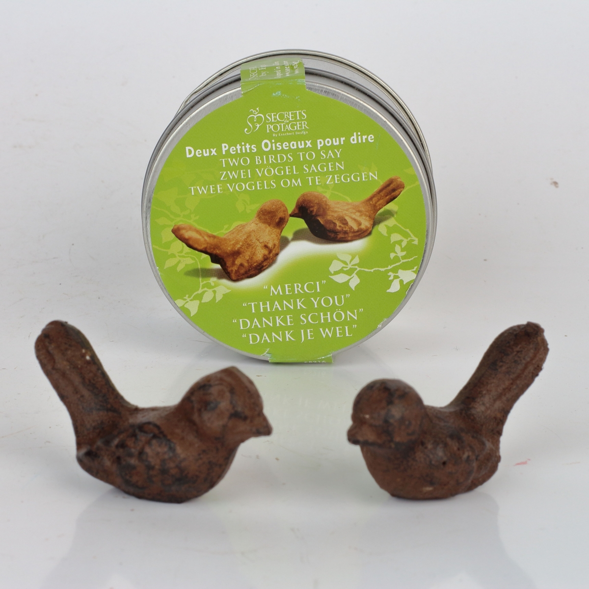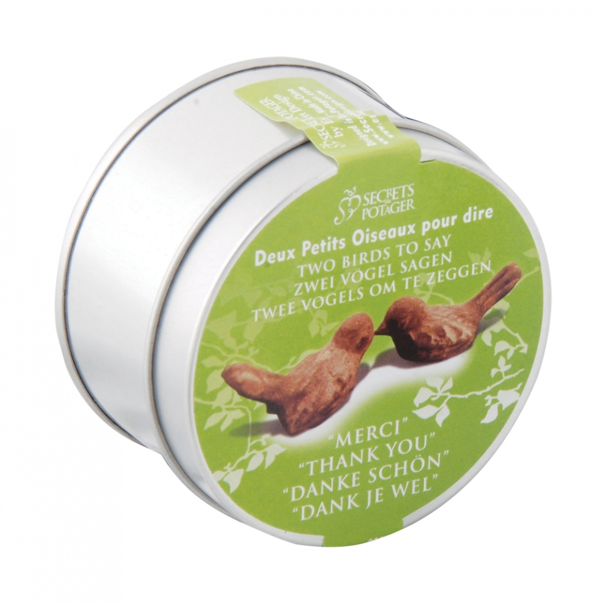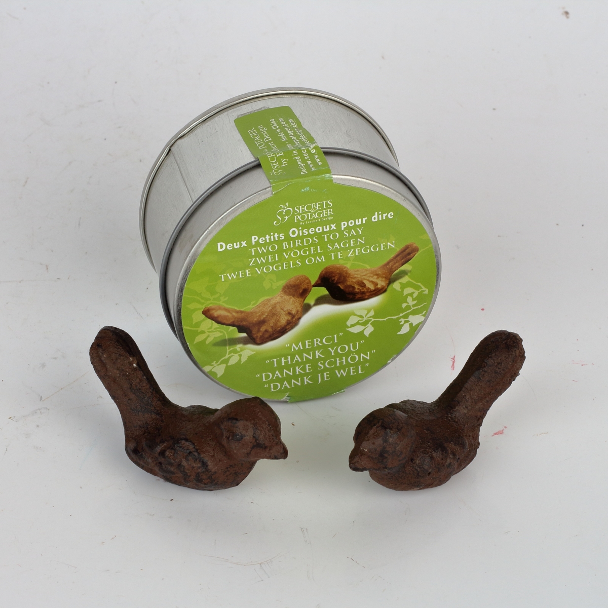 Jarné dekorácie vtáčiky 5x3cm v plechovej darčekovej krabičke urobia radosť každému obdarovanému.