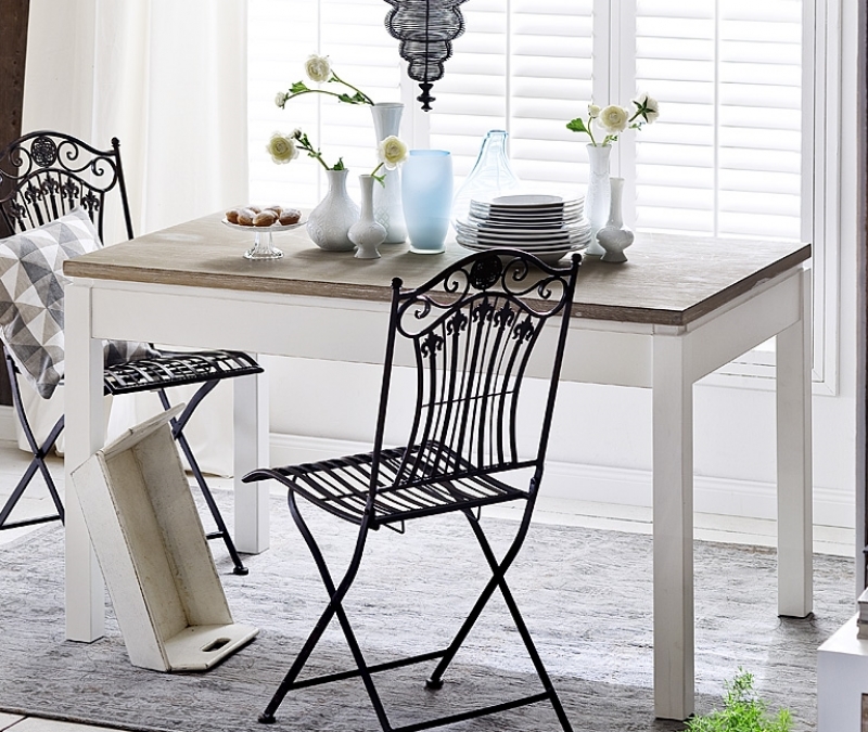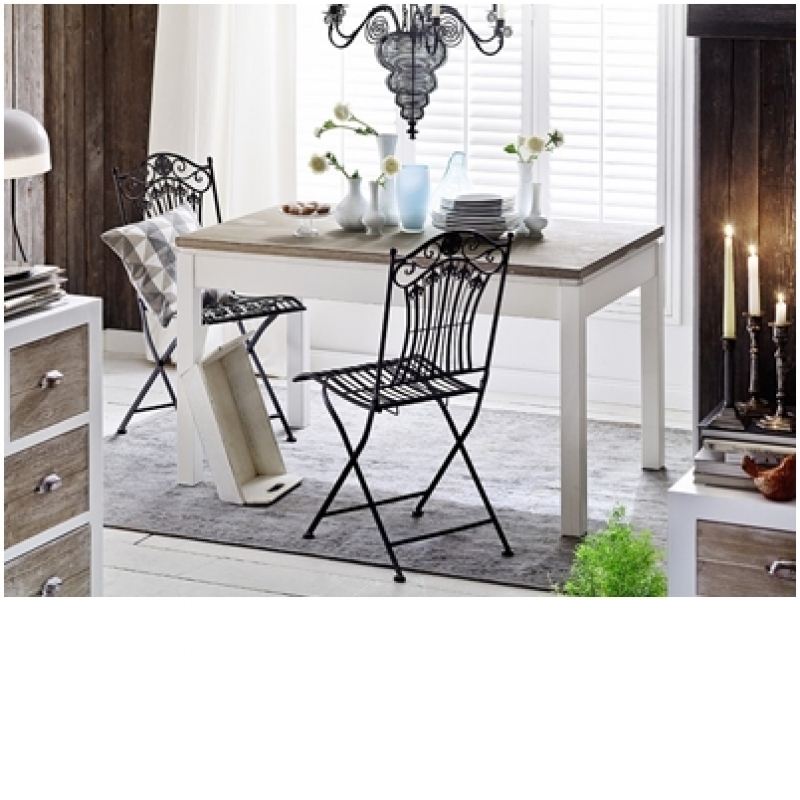 Stôl kombinuje bielu farbu s prírodnou farbou dreva. Necháva tak vyniknúť kráse dreva a zároveň je veľmi decentný a jednoduchý svojimi tvarmi. Obdĺžnikový tvar je jedným z najbežnejších tvarov jedálenských stolov.