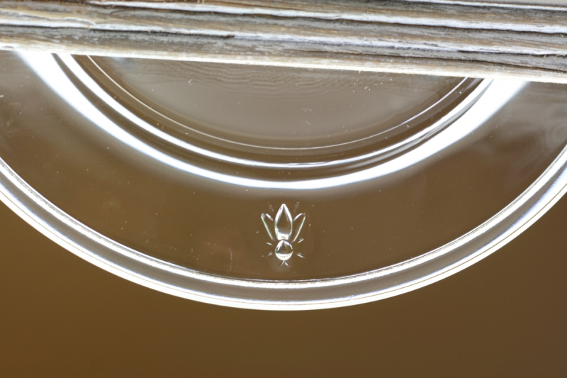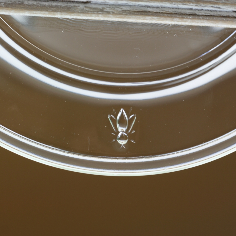 Krásny tanier z lisovaného skla s motívom troch včielok.