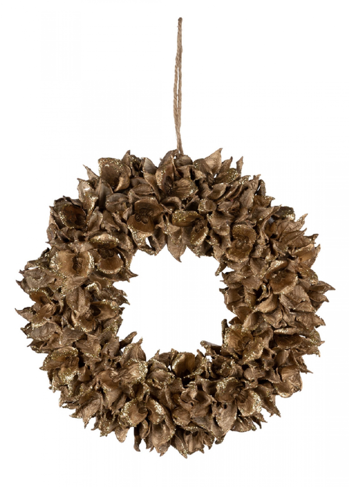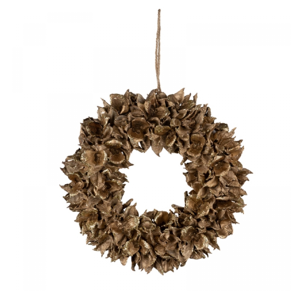 Jesenná dekorácia na dvere v tvare venca zo pozlátených šiškových šupín je určená na zavesenie na vchodové dvere, bránku alebo do okna. Tento prírodný veniec môžete využiť aj ako dušičkový aranžmán na hrob alebo ako vianočné dekorácie na hrob, kedy na veniec môžete pomocou tavnej pištole prilepiť malé banky a umelé kvety vianočnej ruže.