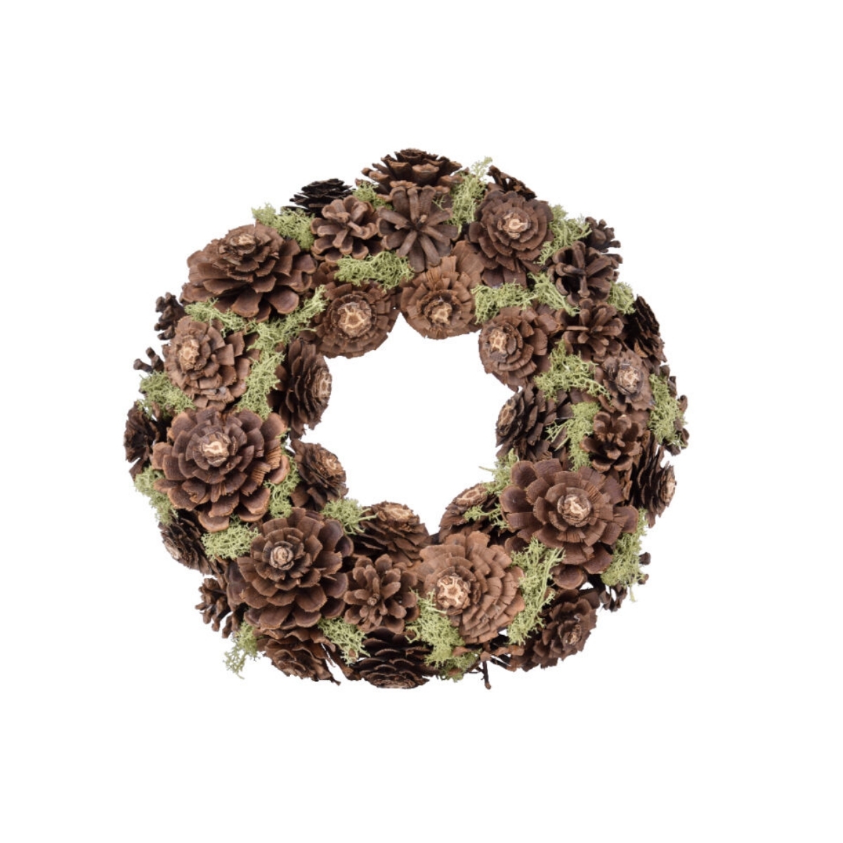 Jesenná dekorácia na dvere veniec zo šišiek a machu 36x36x9cm