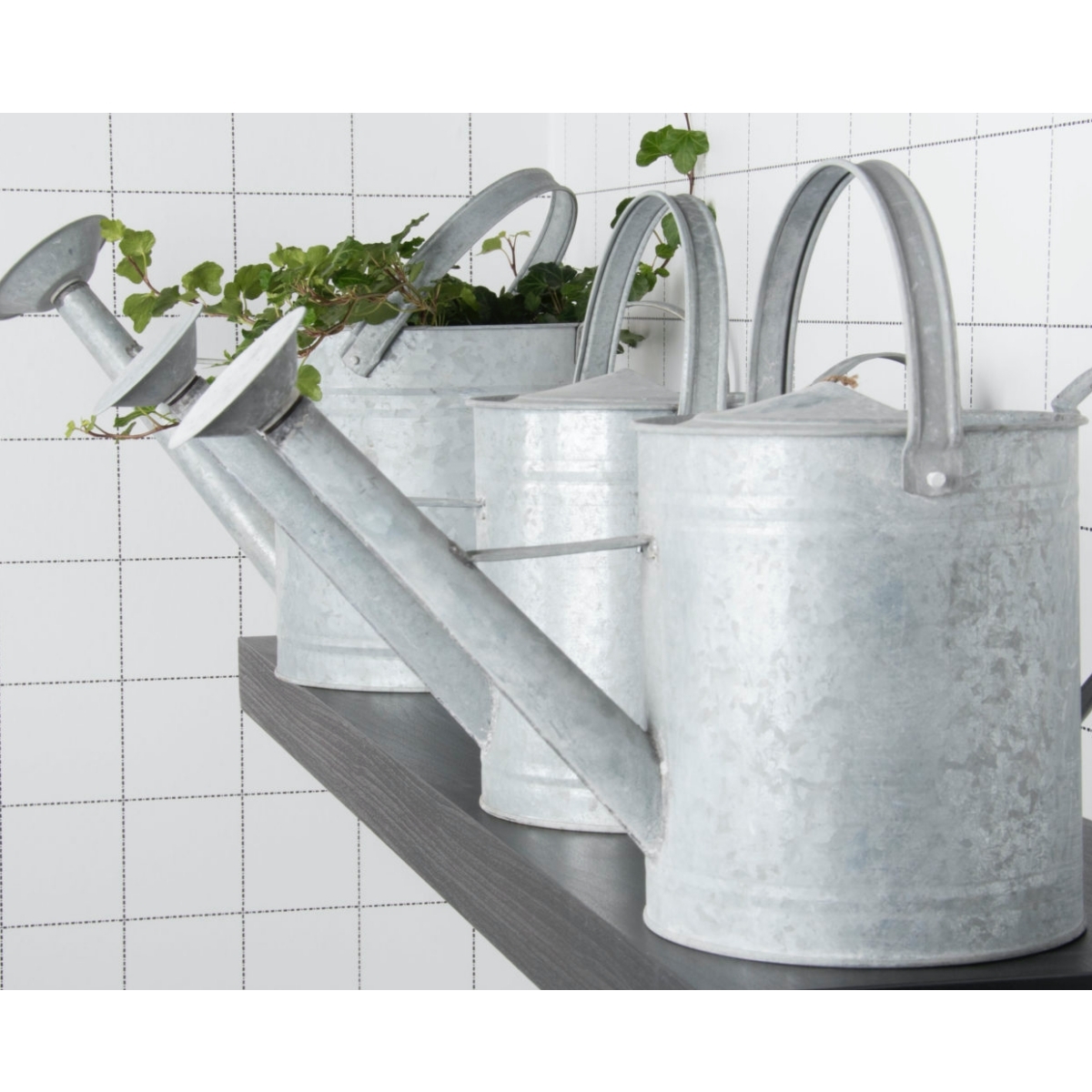 Používanie zinku v záhrade je prastará tradícia a používa sa mnohými rôznymi spôsobmi. Táto tradičná anglická kanva s horným a bočným úchopom je vhodná najmä na zalievanie rastlín na záhrade. Vďaka funkčnému tvaru a zosilnenej tryske je možné túto kanvicu používať každý deň. Odnímateľná tryska umožňuje voliť medzi priamym prúdom vody alebo efektom dažďovej sprchy. Jednoduché plnenie vďaka veľkému otvoru hore.