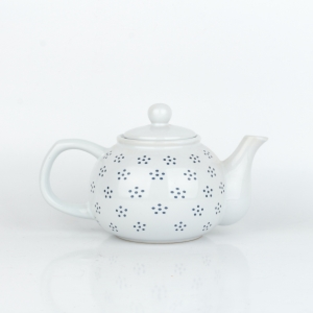 Kanvička na čaj v bielej farbe s jemným modrým vzorom, urobí radosť každému milovníkovi tohto nápoja.