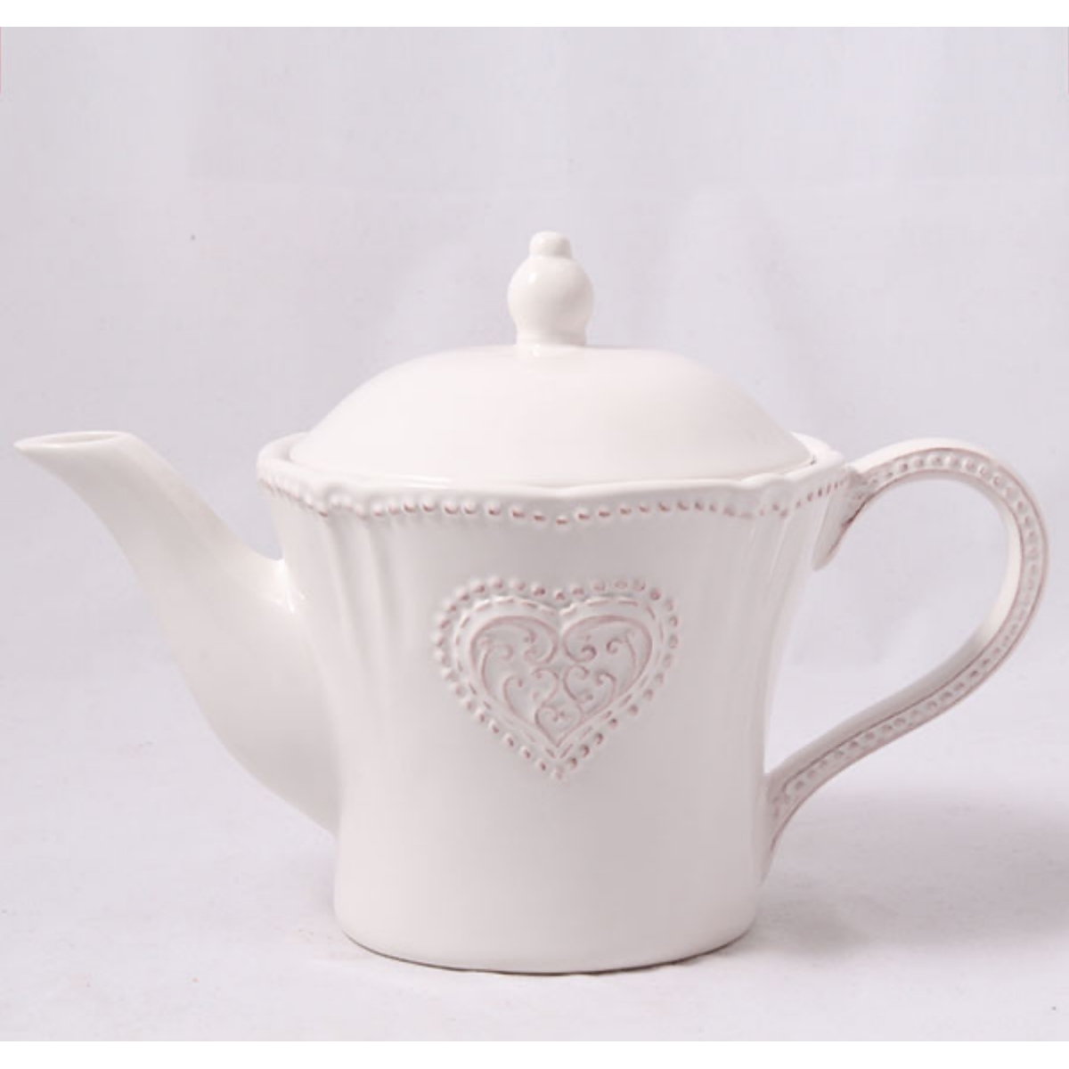 Kanvička na čaj z kameniny s pokrievkou vo veľmi jemných farbách, zdobená srdiečkom.