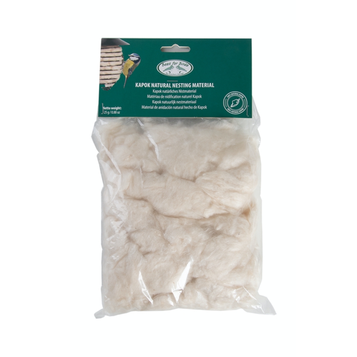 Kapok je 100% prírodný materiál vhodný na tvorbu hniezd čmeliakov, vtákov alebo drobných hlodavcov.