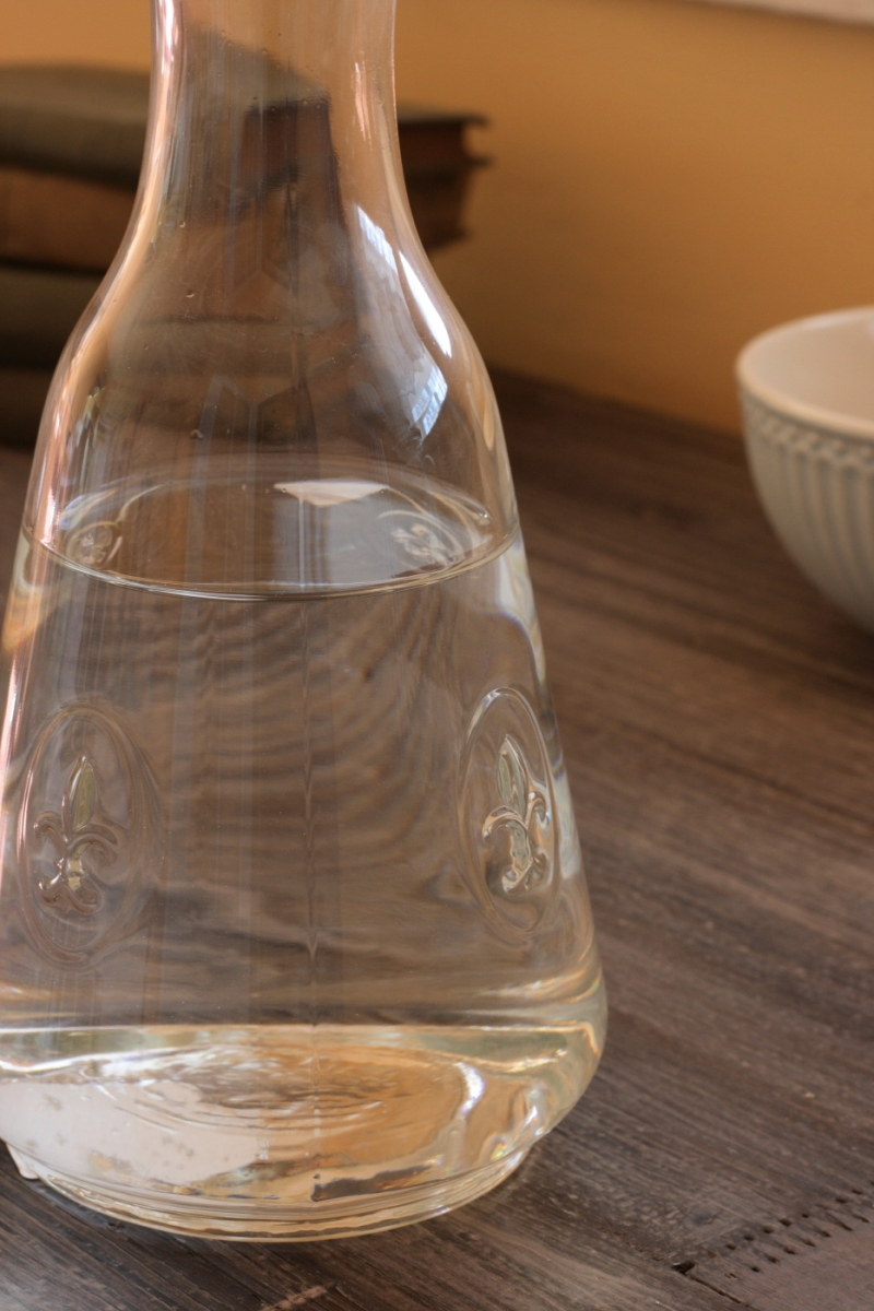 Karafa na Váš obľúbený nápoj. Karafa z lisovaného skla s motívom štyroch medailónikov.