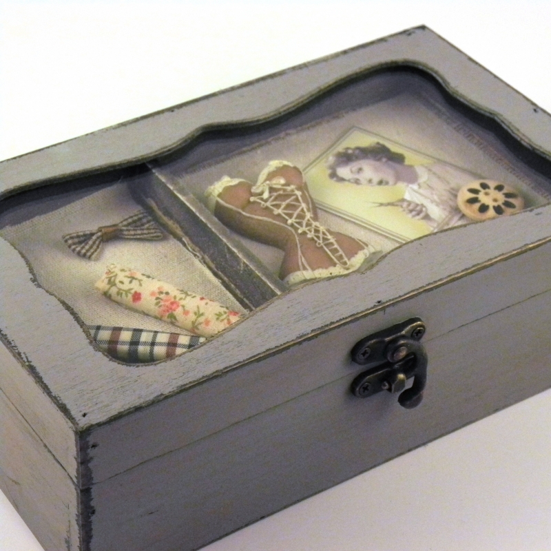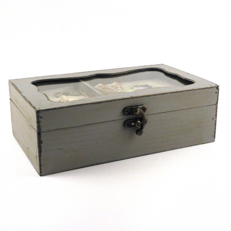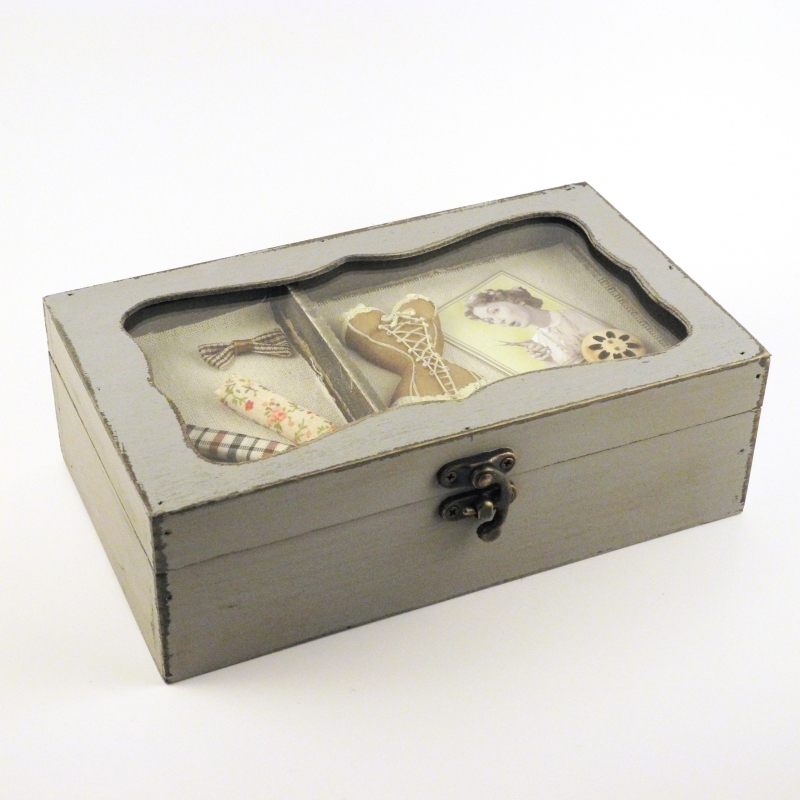 Kazeta na šitie drevená v šedej farbe.