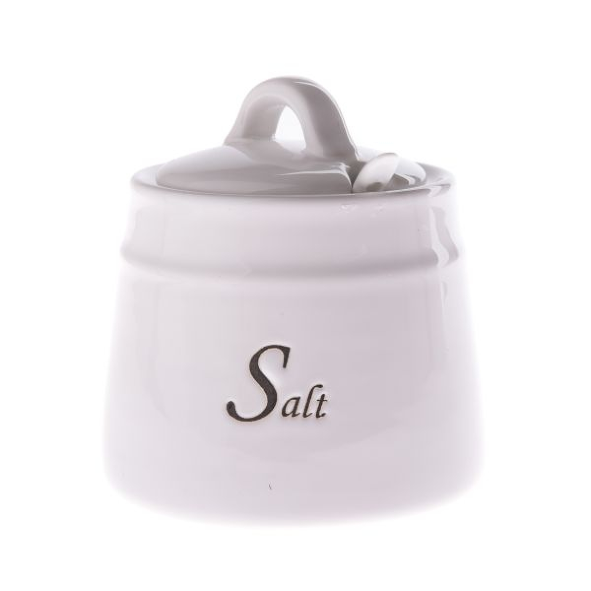 Táto keramická dóza na soľ si zaslúži vystaviť na poličke. Už nebudete musieť pri solenie otvárať skriňu a soľ opäť upratovať.