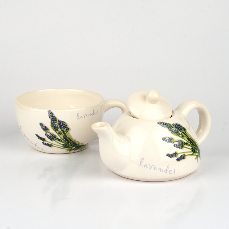 Keramická konvička a hrníček levandule. Celková výška 16cm. Průměr hrdla šálku 11cm. Velice krásný dárek, který opravdu upřímně potěší.