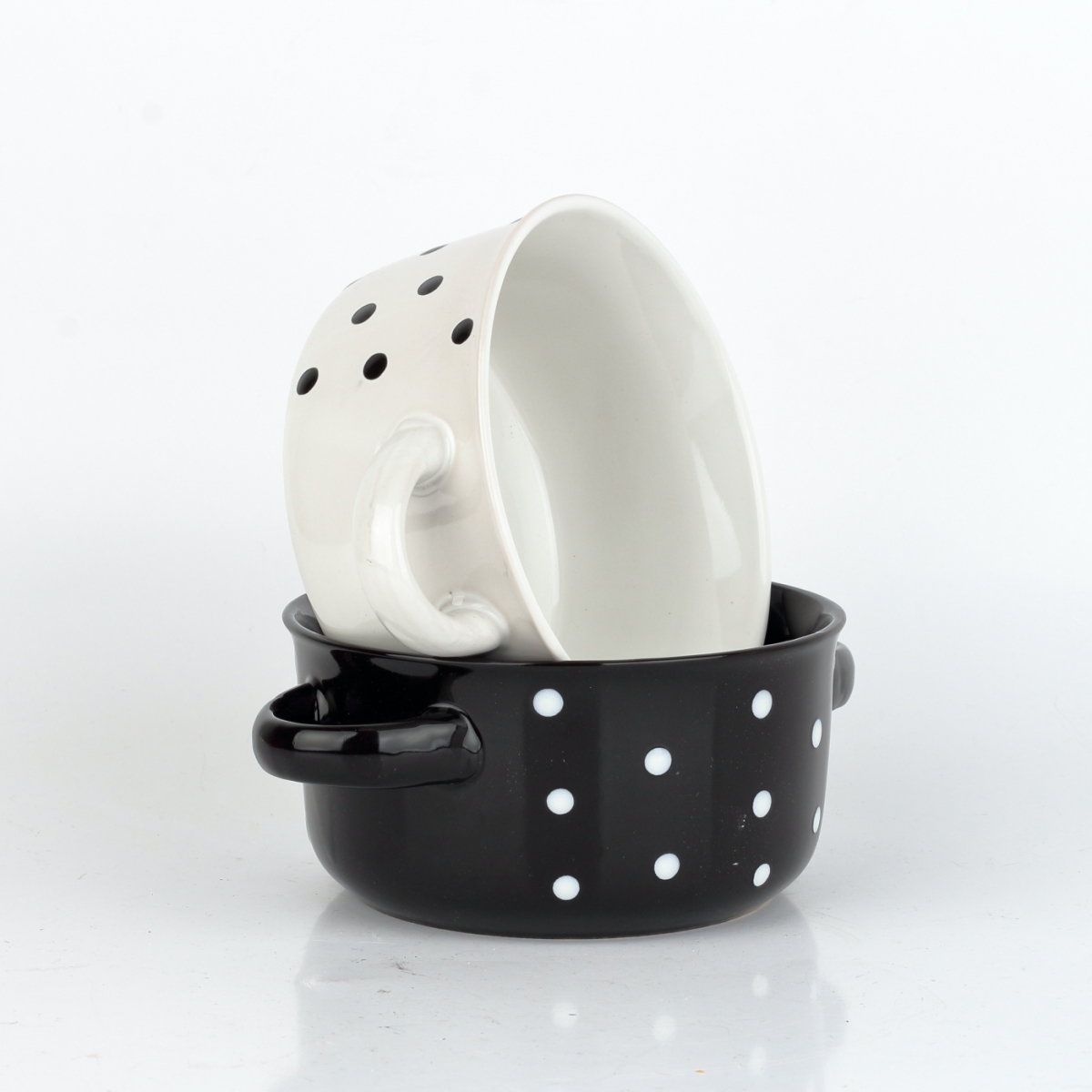 Keramická miska biela s čiernymi bodkami 560 ml s uškami