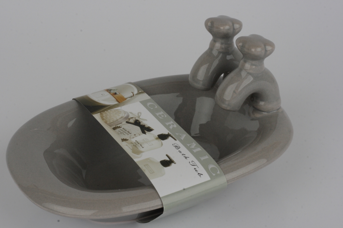 Keramická miska na mydlo vaňa sivá 15x10x8cm slúži na odkladanie mydla, ktoré sa inak ako je libo povaľuje po umývadle či skrinke a robí neporiadok.