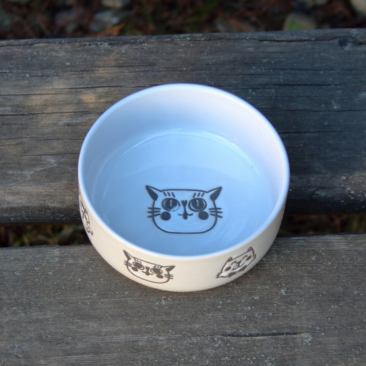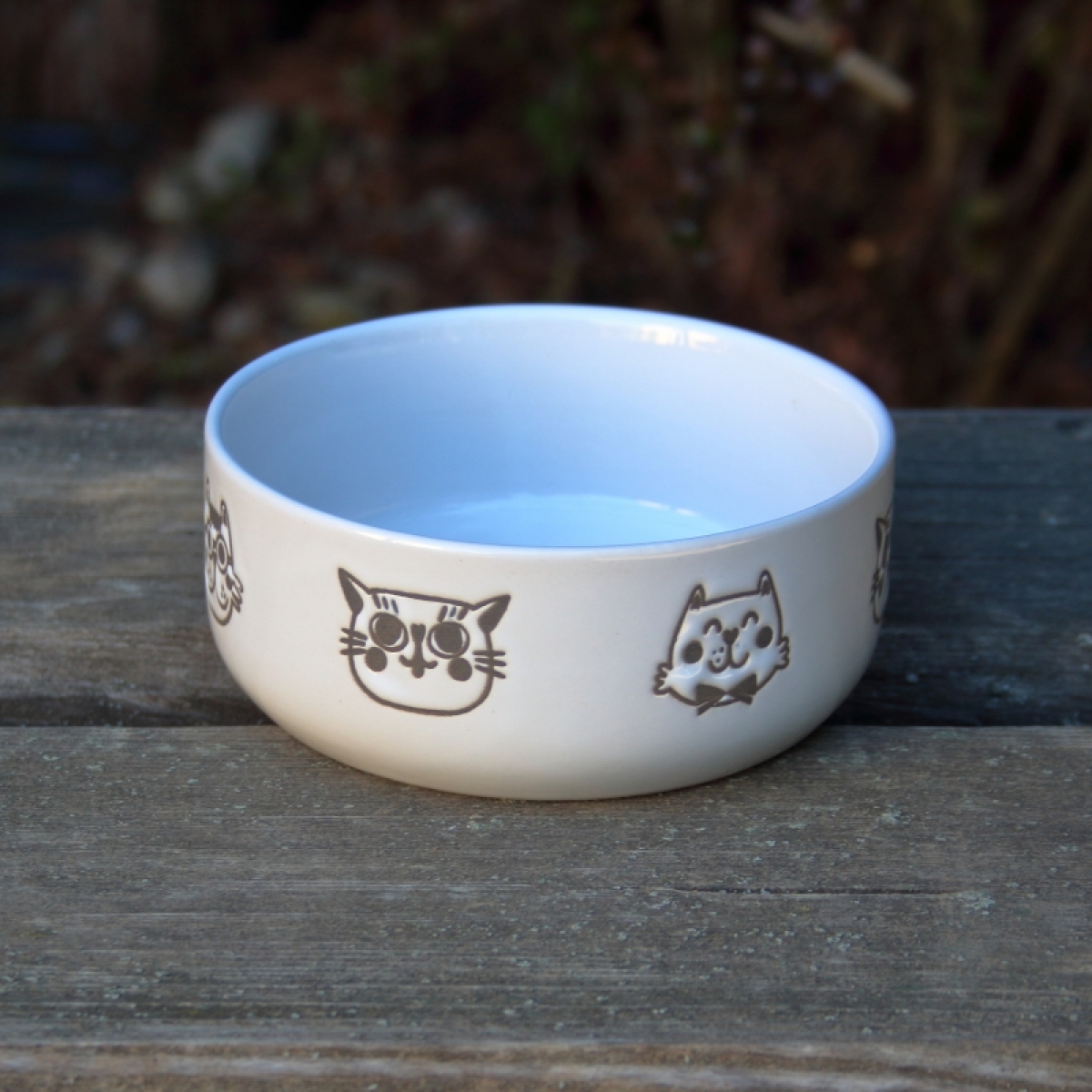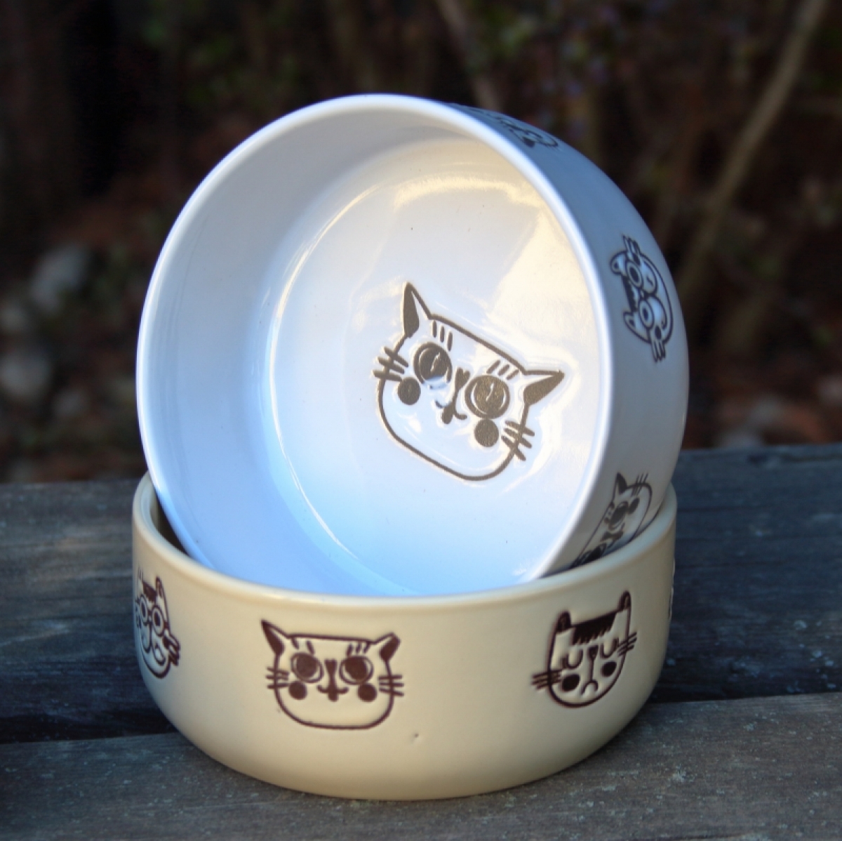 Keramická miska pre mačky v bielej farbe s roztomilými obrázkami mačiek poteší nielen vášho domáceho maznáčika, ale iste aj vás.