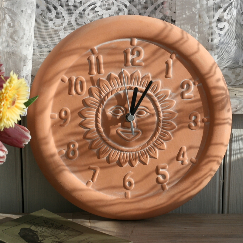 Keramické hodiny slnko 30cm budú krásne vyzerať na fasáde domu alebo pod zastrešenou pergolou.