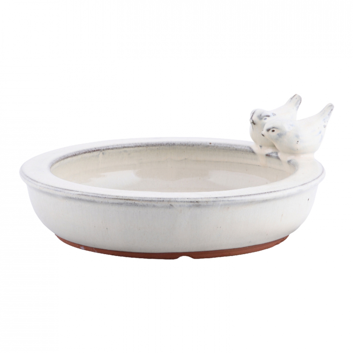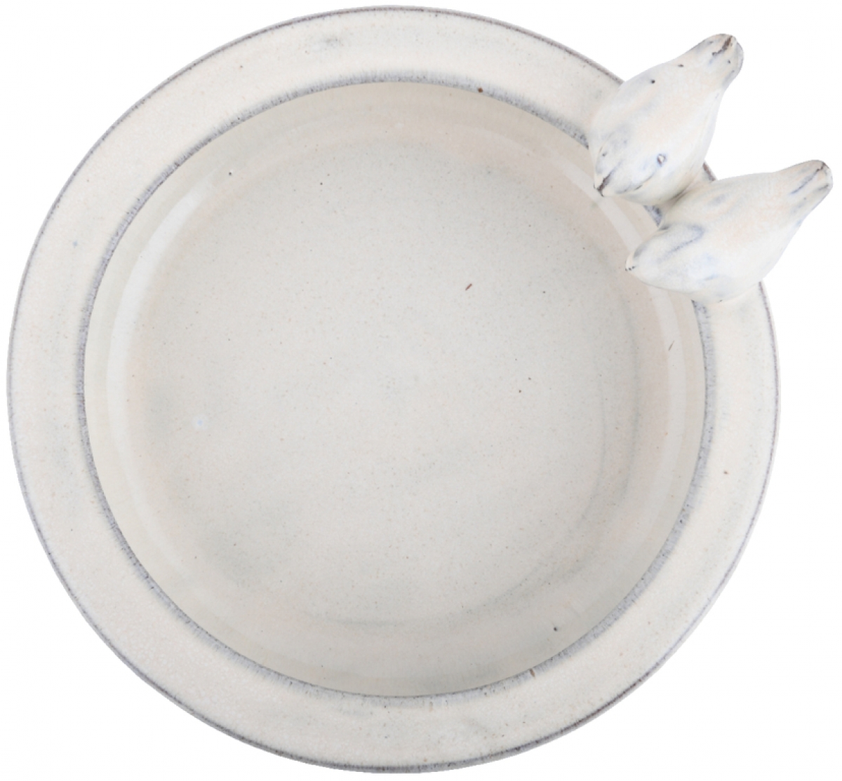 Keramické pítko pre vtáky v krémovej farbe vhodné na záhradu či terasu.