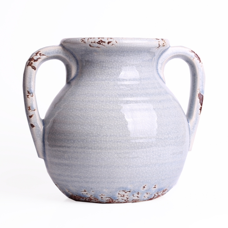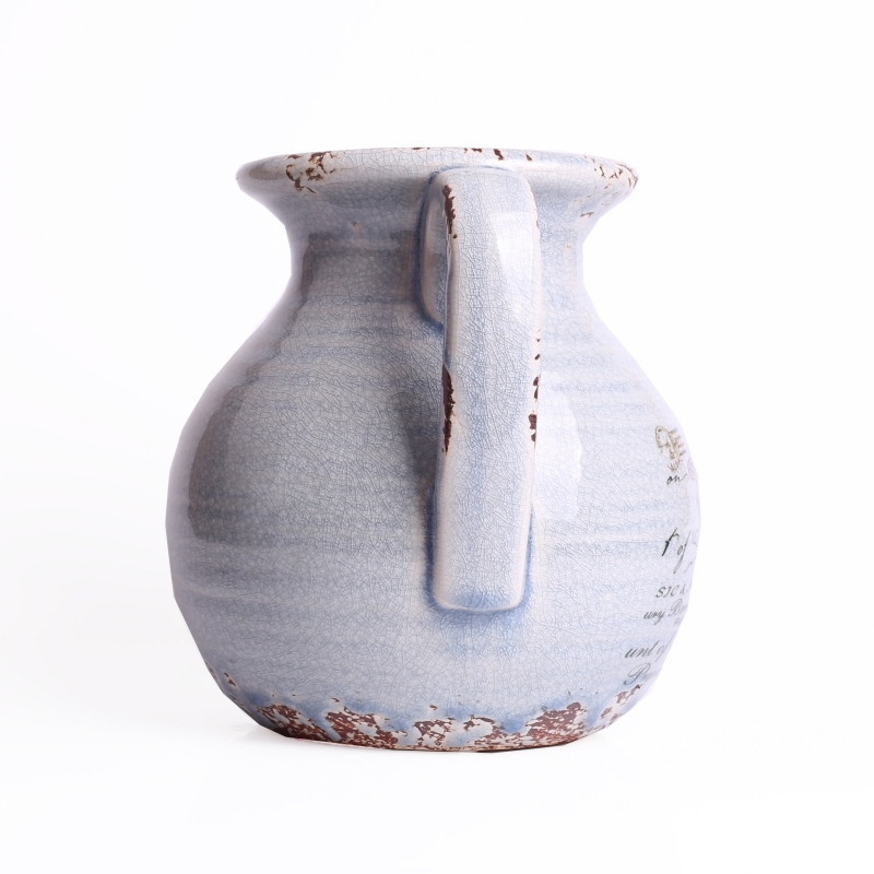 Kvetináč má podobu antického džbánu s krásnou popraskanú galzurou, otlčeným vzhľadom, ozdobnými nápisy a motívom kvetín. Všetko spolu krásne ladí a pôsobí starobylým dojmom.