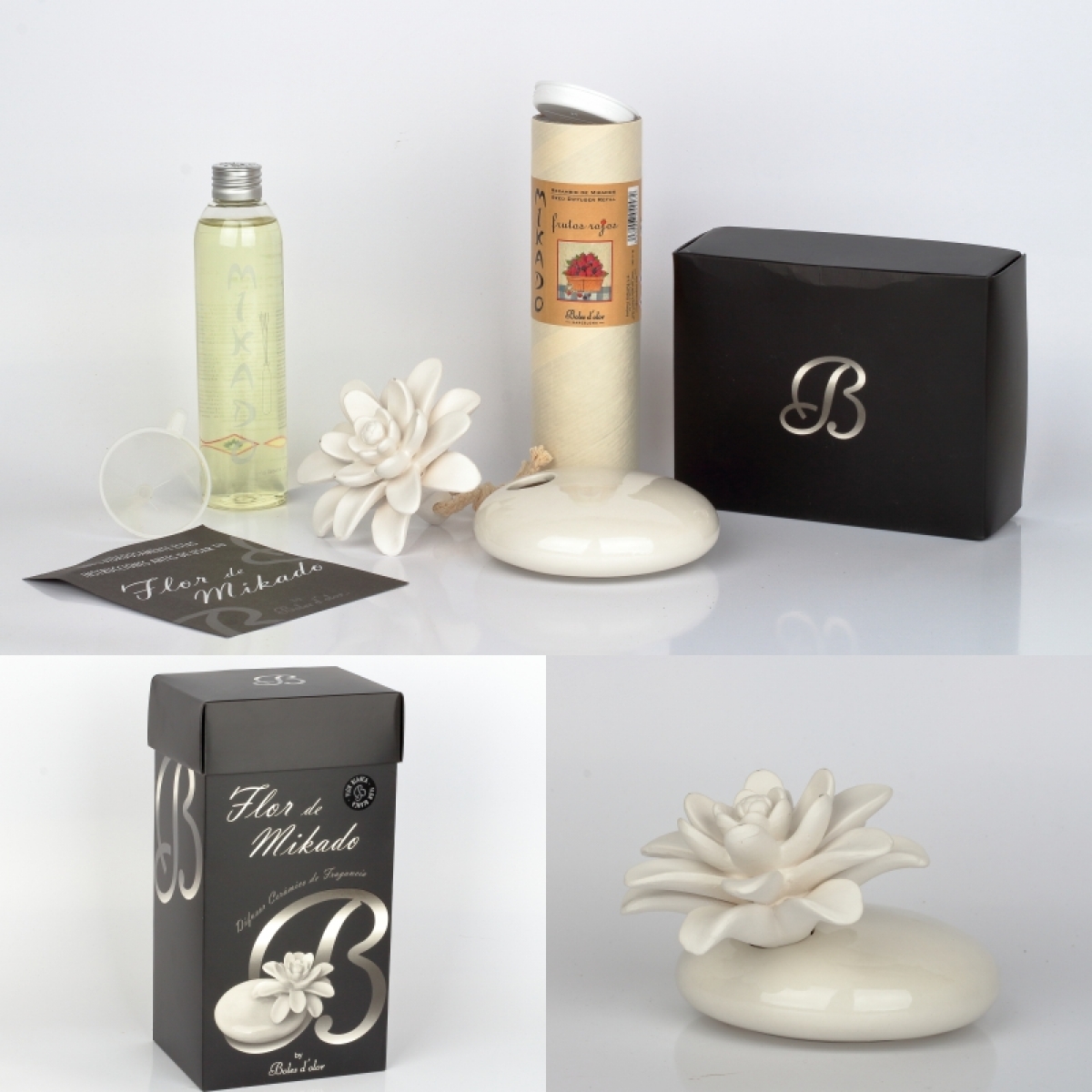 Výrobok vyberte z obalu, položte ho na suchú a rovnú plochu. Naplňte dózu vôňou Mikado pod okraj, maximálne do výšky 3cm. Opatrne vložte dovnútra kvet, ktorý rýchlo absorbuje vôňu. Ak je vôňa po týždňoch menej intenzívne, prilejte do spodnej dózy opäť vôňu Mikado.