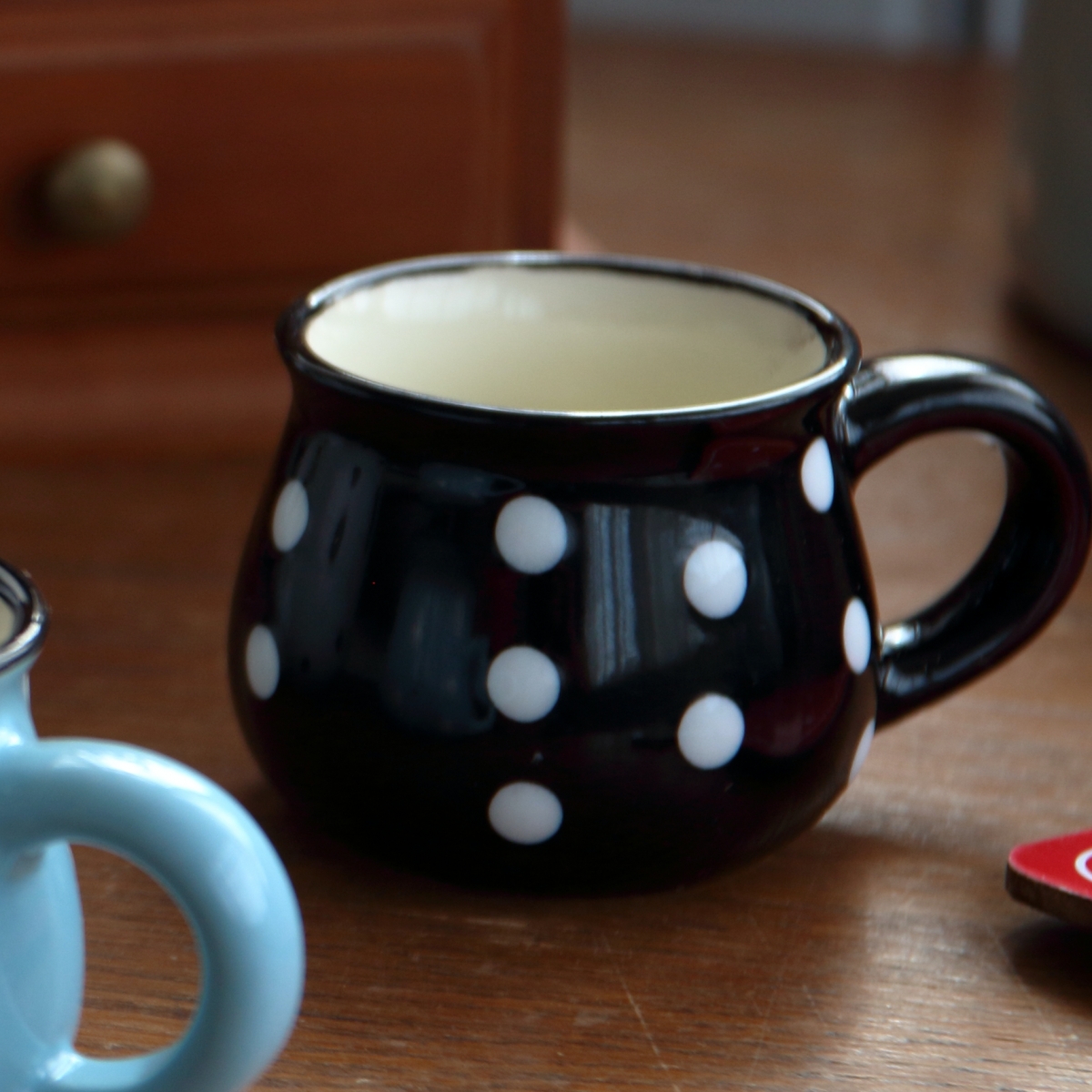 Nielen na kávu a kakao je vhodný tento keramický hrnček. Klasický bucľatý tvar z neho robí krásny doplnok kuchyne s praktickým využitím. Dekor, v podobe bielych bodiek, je jedným z najtradičnejších vôbec, krásne kontrastuje s čiernou glazúrou.