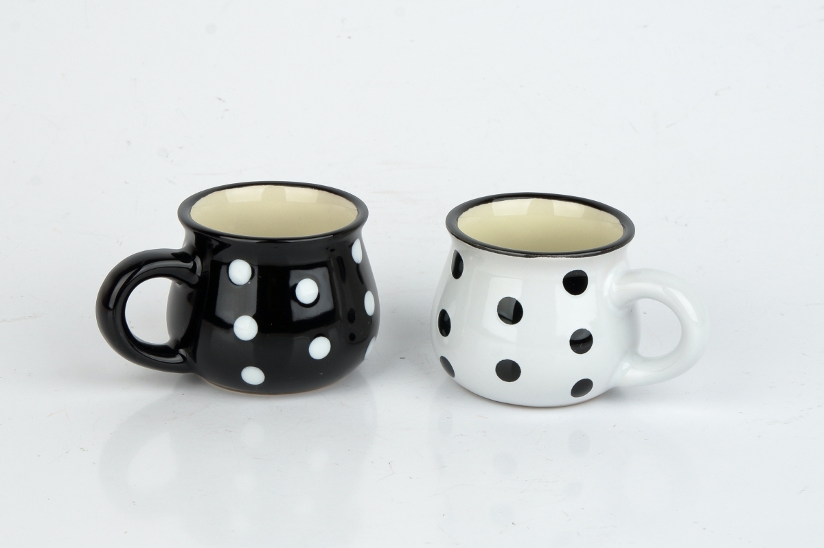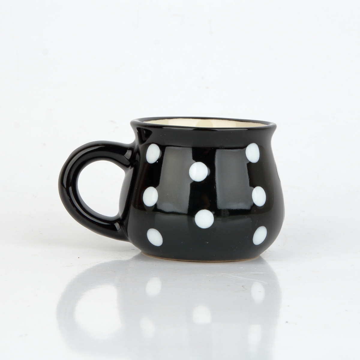 Keramický hrnček čierny s bielymi bodkami 75ml